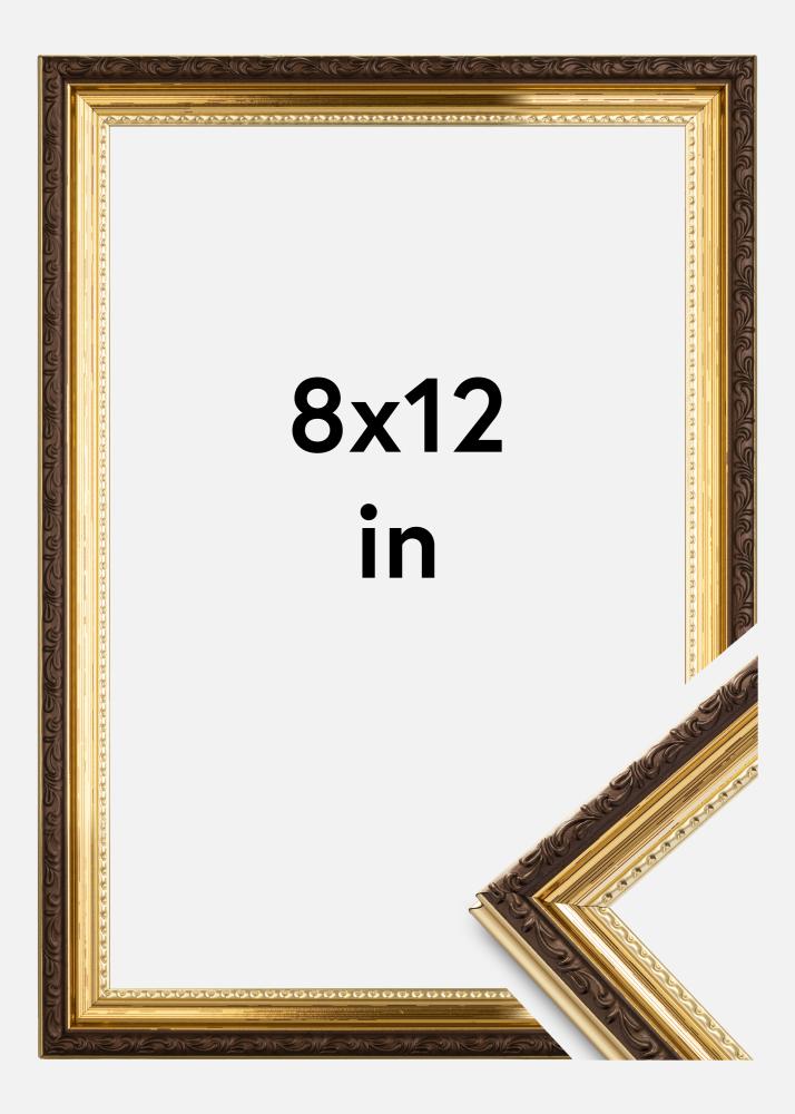Ψάχνετε για μια όμορφα διακοσμημένη κορνίζα σε παλαιότερο στυλ; Το Abisko ακρυλικό γυαλί Guld είναι μια στιβαρή κορνίζα σε χρυσό με απίστευτα κομψά στολίδια. Το πλαίσιο των 25 mm έχει λαμπερό χρυσό χρώμα με ένα διακοσμημένο καφέ περίγραμμα στο κέντρο. Ακόμη και το χρυσό τμήμα είναι διακοσμημένο, με ένα κυματιστό μοτίβο κοντά στο γυαλί.