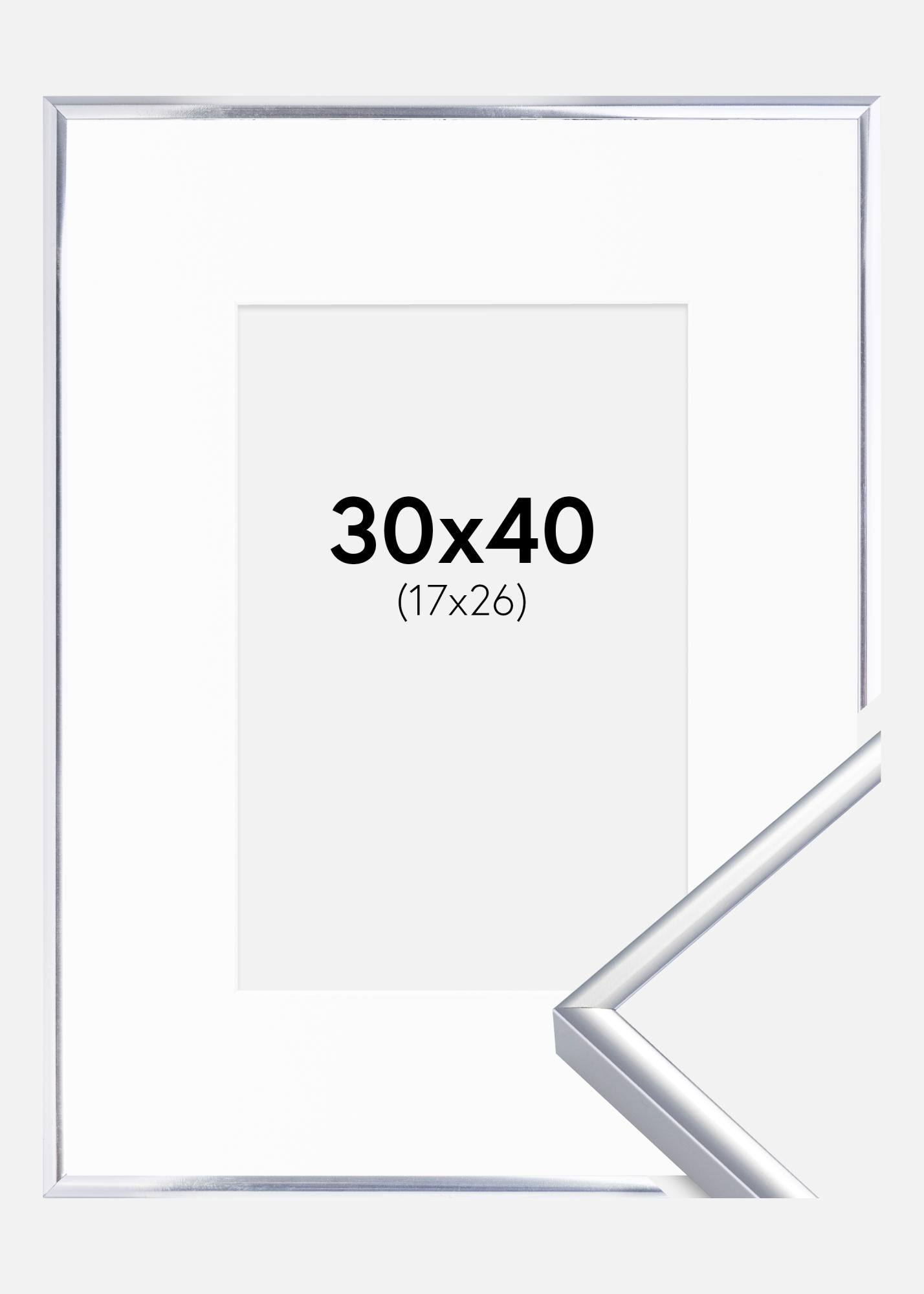 Πλαίσιο Αλουμίνιο Λαμπερό Ασημί 30x40 cm - Πασπαρτού Λευκό 18x27 cm