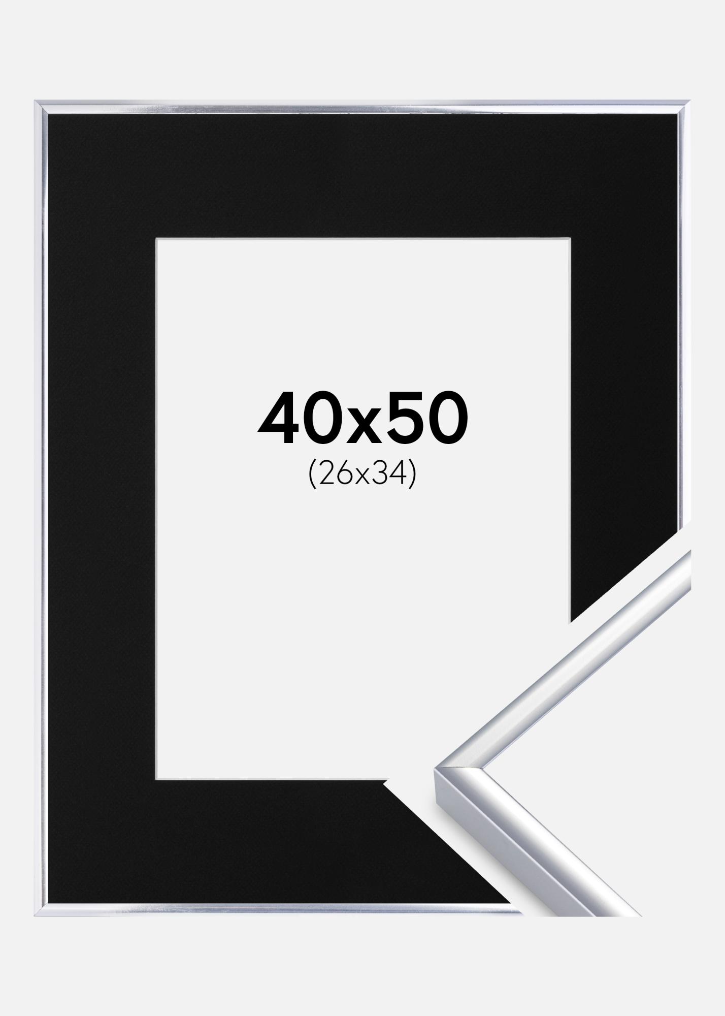 Πλαίσιο Αλουμίνιο Λαμπερό Ασημί 40x50 cm - Πασπαρτού Μαύρος 27x35 cm