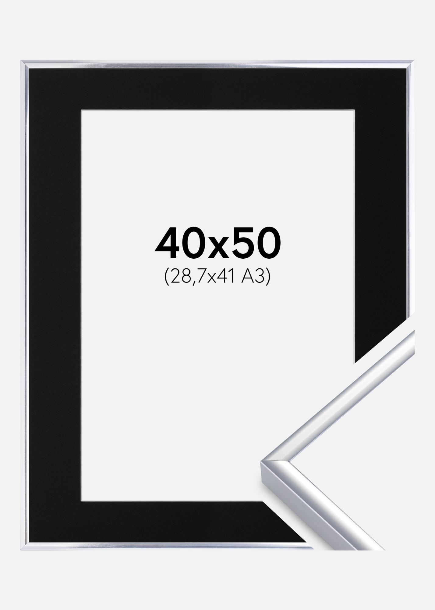 Πλαίσιο Αλουμίνιο Λαμπερό Ασημί 40x50 cm - Πασπαρτού Μαύρος 29,7x42 cm (A3)