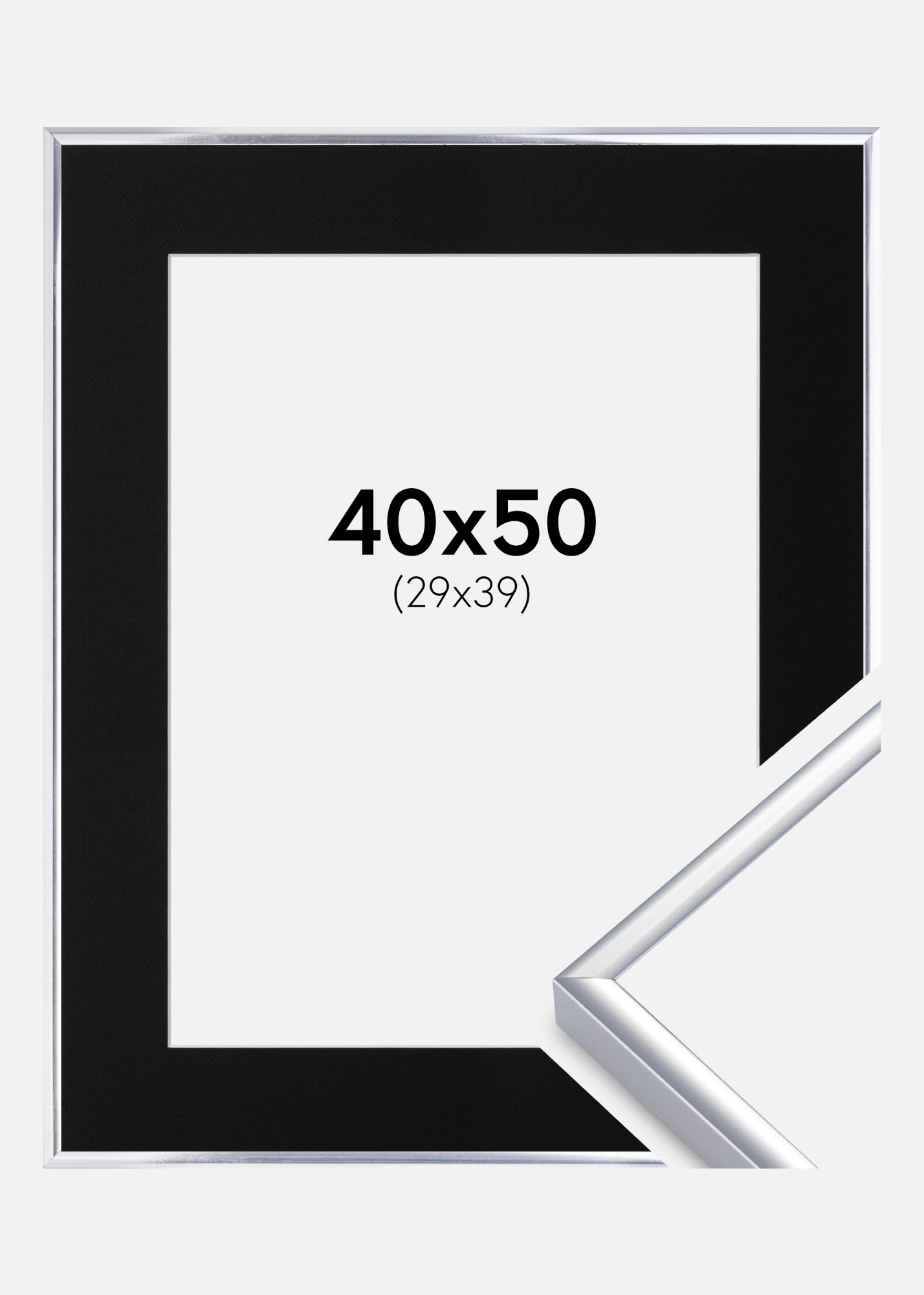 Πλαίσιο Αλουμίνιο Λαμπερό Ασημί 40x50 cm - Πασπαρτού Μαύρος 30x40 cm