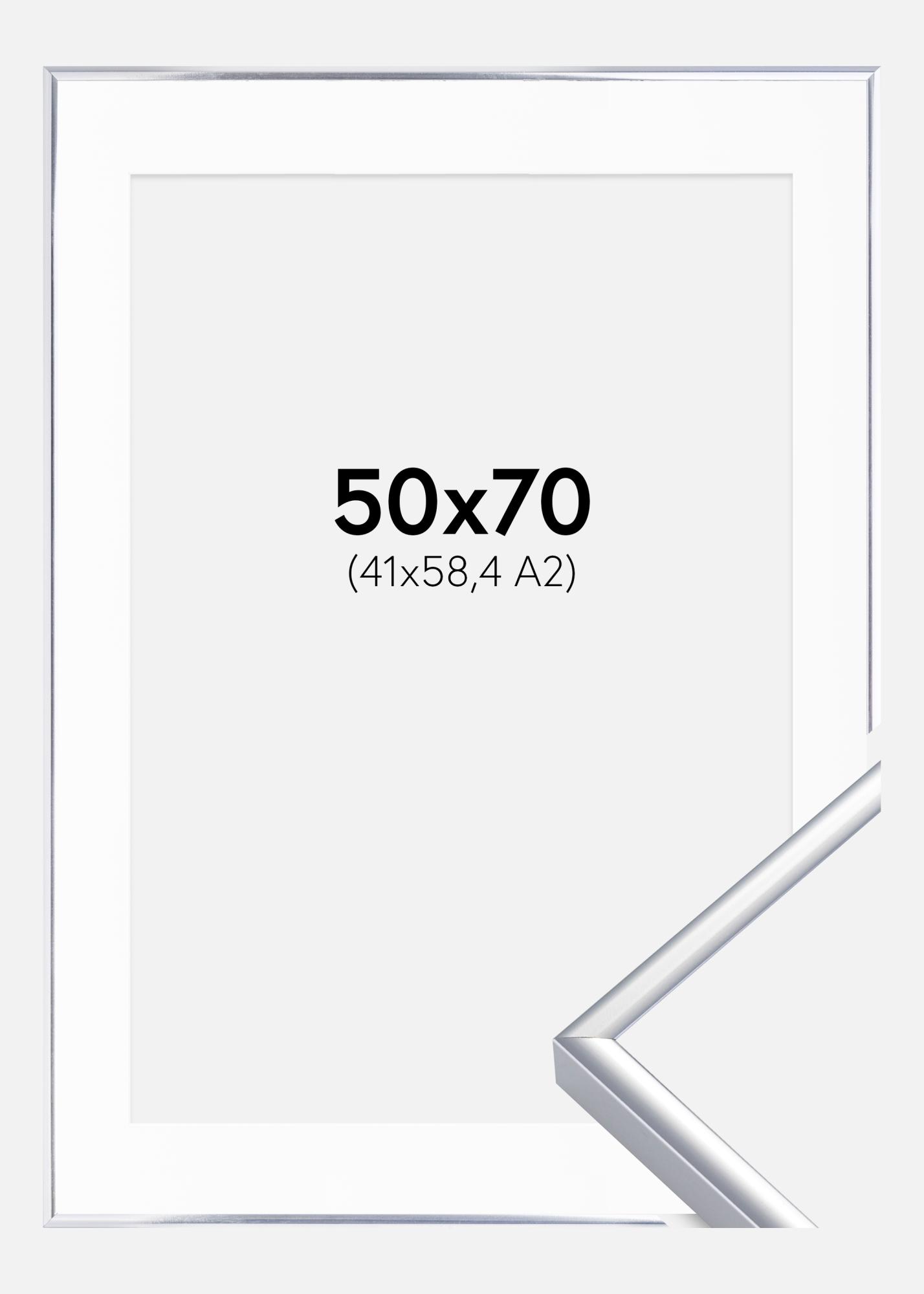 Πλαίσιο Αλουμίνιο Λαμπερό Ασημί 50x70 cm - Πασπαρτού Λευκό 42x59,4 cm (A2)