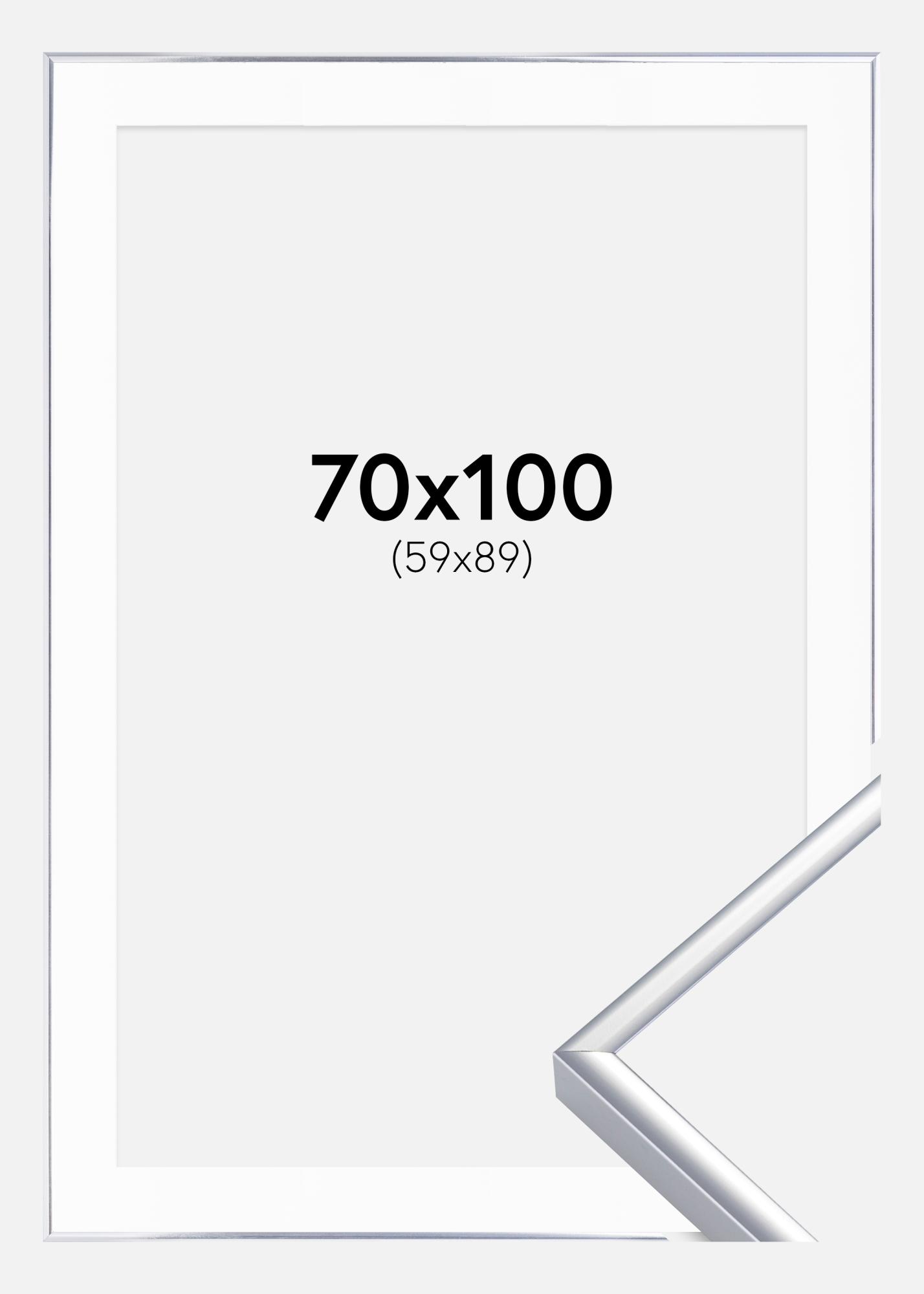 Πλαίσιο Αλουμίνιο Λαμπερό Ασημί 70x100 cm - Πασπαρτού Λευκό 60x90 cm