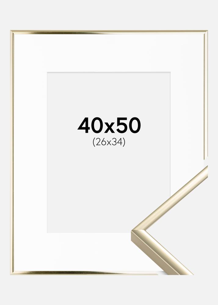 Πλαίσιο Αλουμίνιο Λαμπερός Χρυσός 40x50 cm - Πασπαρτού Λευκό 27x35 cm