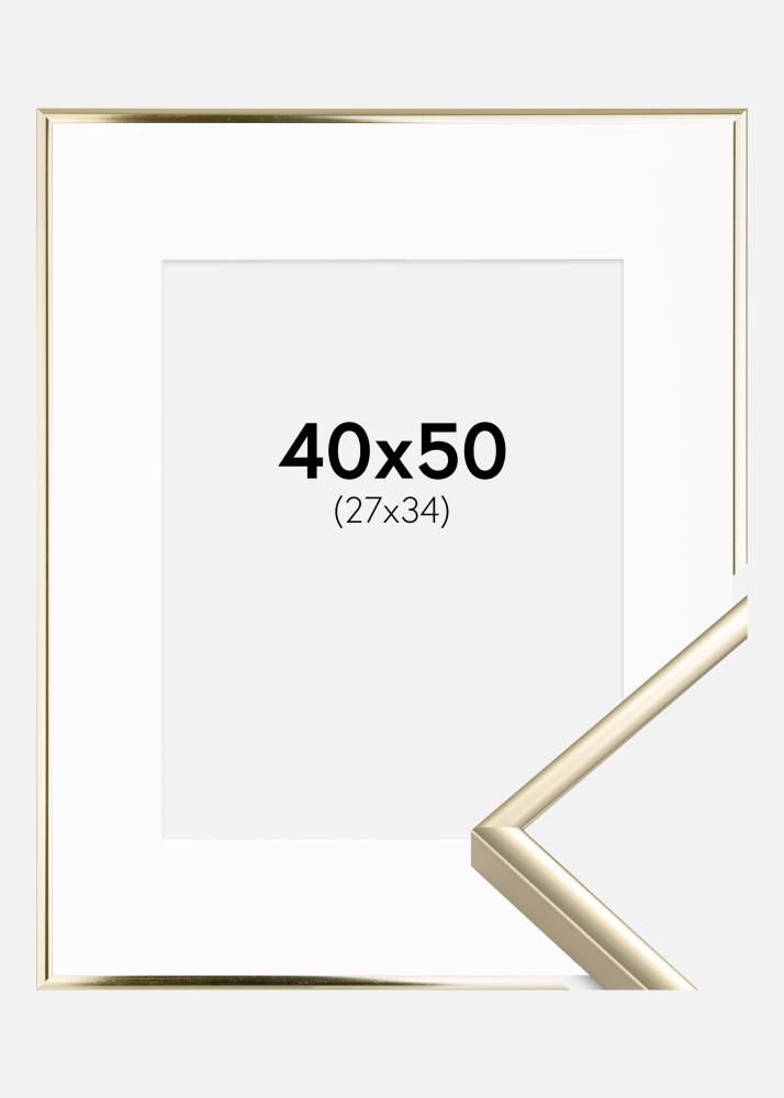 Πλαίσιο Αλουμίνιο Λαμπερός Χρυσός 40x50 cm - Πασπαρτού Λευκό 28x35 cm