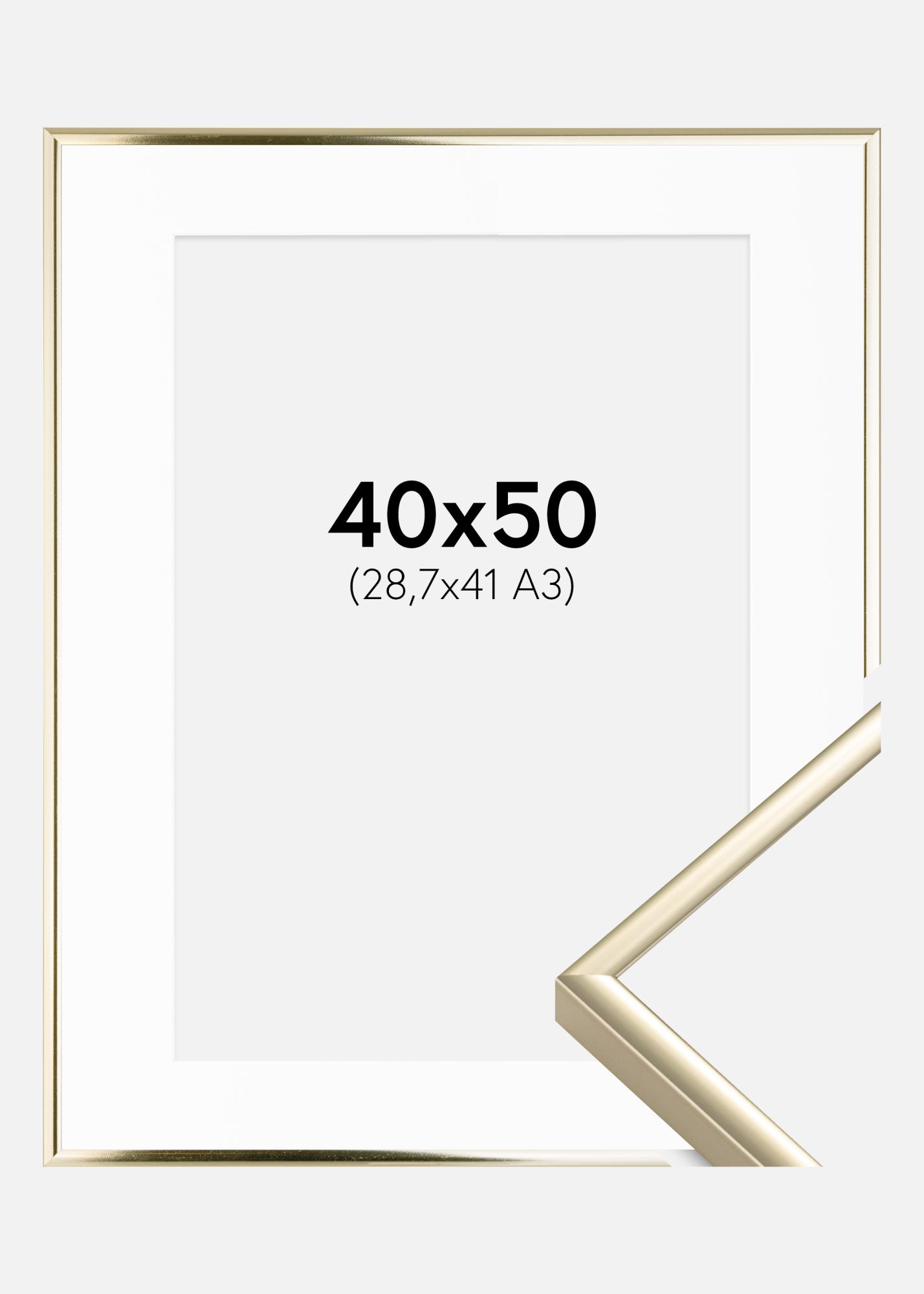 Πλαίσιο Αλουμίνιο Λαμπερός Χρυσός 40x50 cm - Πασπαρτού Λευκό 29,7x42 cm (A3)