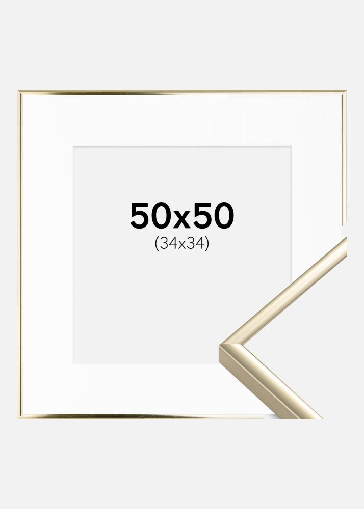 Πλαίσιο Αλουμίνιο Λαμπερός Χρυσός 50x50 cm - Πασπαρτού Λευκό 35x35 cm