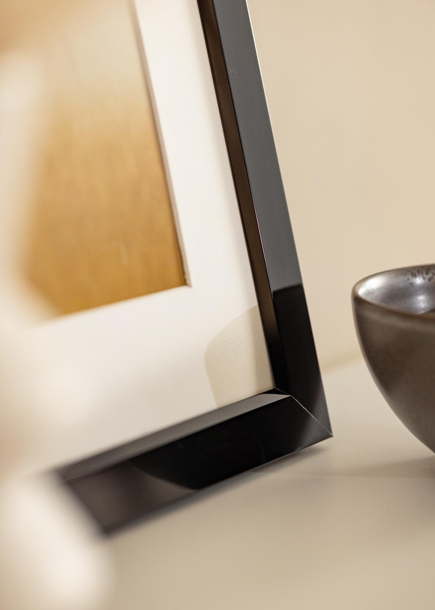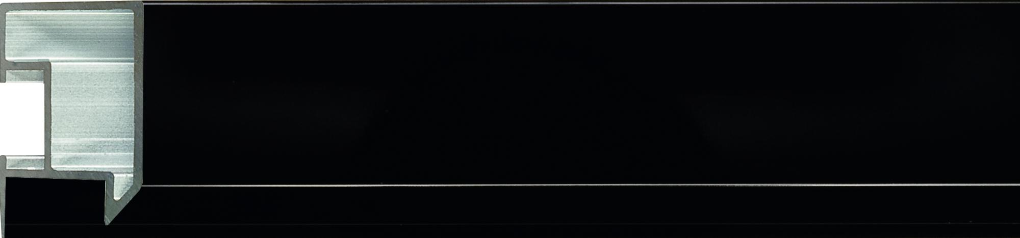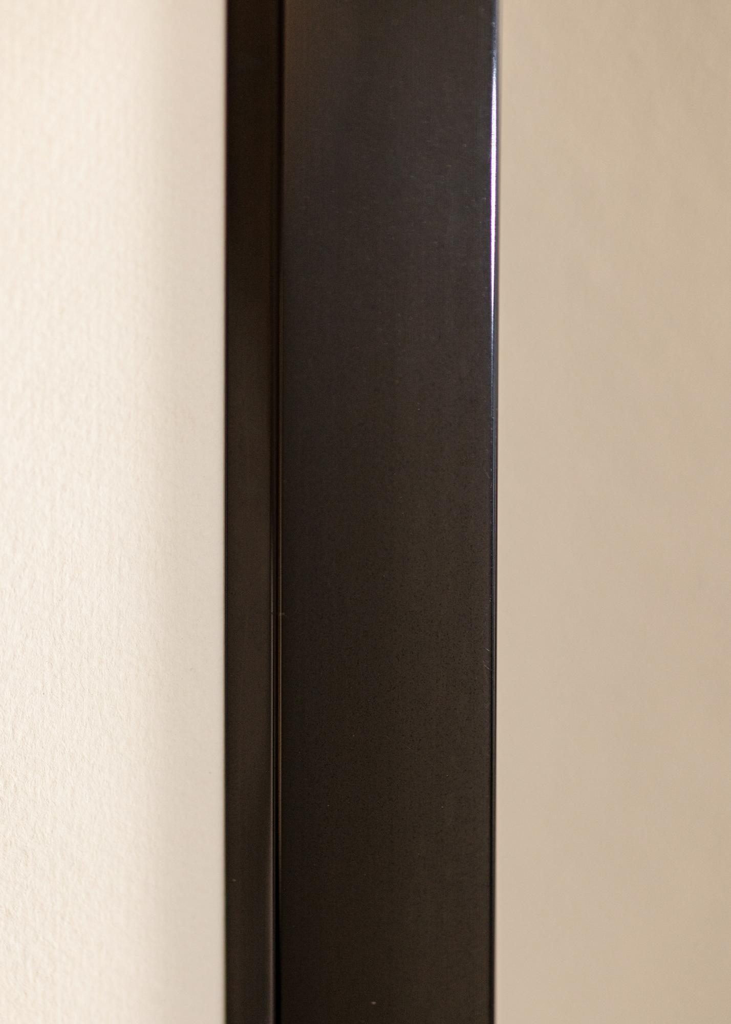 Μαύρη κομψή κορνίζα υψηλής γυαλάδας, κατασκευασμένη από αλουμίνιο, με σαφή εσωτερική λοξότμηση. Η κορνίζα είναι κατάλληλη για χρήση από φωτογραφικά πορτρέτα μέχρι τοπιογραφίες σε ακουαρέλα και με ένα λευκό πασπαρτού ενισχύεται περαιτέρω το θέμα. Η γυαλιστερή λάκα κάνει την κορνίζα να ταιριάζει ιδιαίτερα καλά με σύγχρονες βιομηχανικές διακοσμήσεις και άλλες μινιμαλιστικές στυλ. Συνδυάστε με άλλες μαύρες κορνίζες για να δώσετε στο δωμάτιο μια αίσθηση ολότητας.