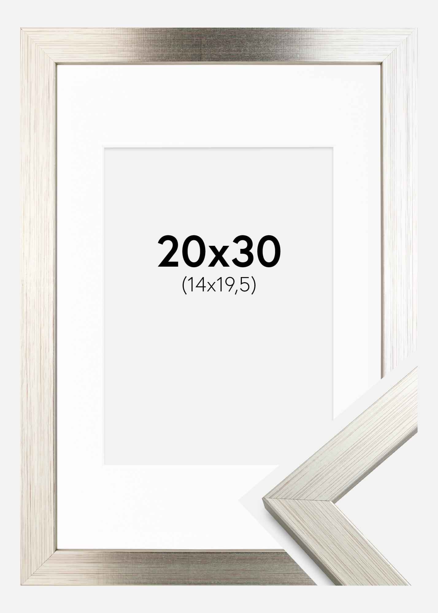Πλαίσιο Ασημί Wood 20x30 cm - Πασπαρτού Λευκό 15x21 cm (A5)