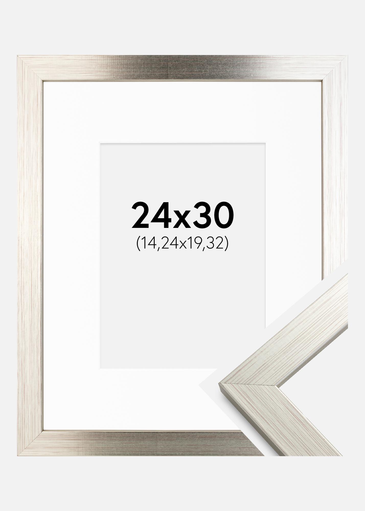 Πλαίσιο Ασημί Wood 24x30 cm - Πασπαρτού Λευκό 6x8 inches