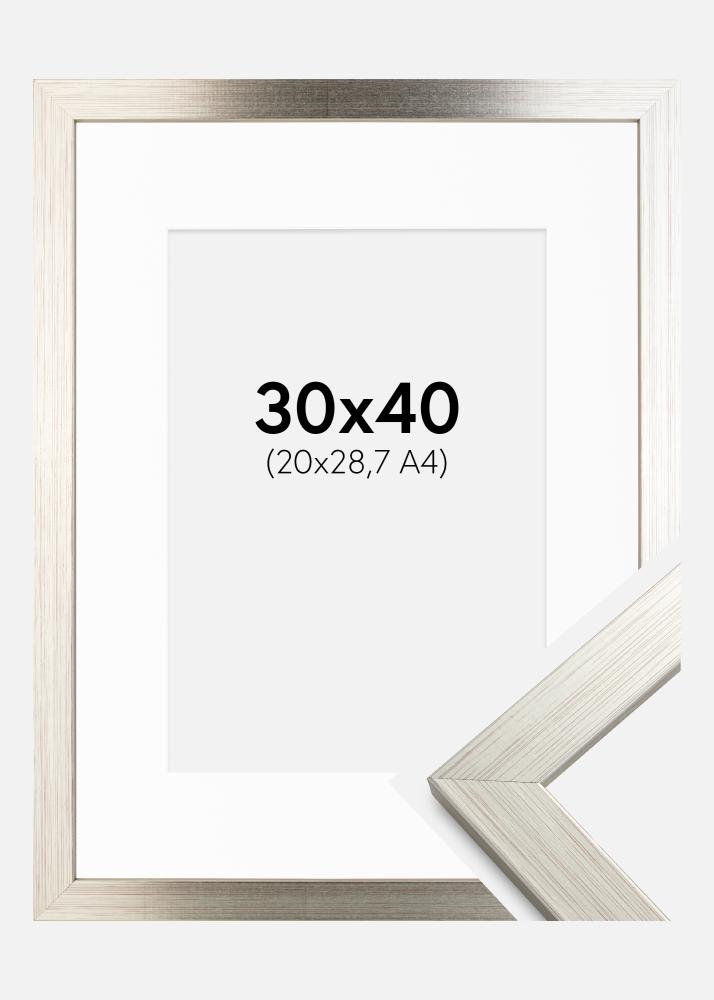 Πλαίσιο Ασημί Wood 30x40 cm - Πασπαρτού Λευκό 21x29,7 cm (A4)