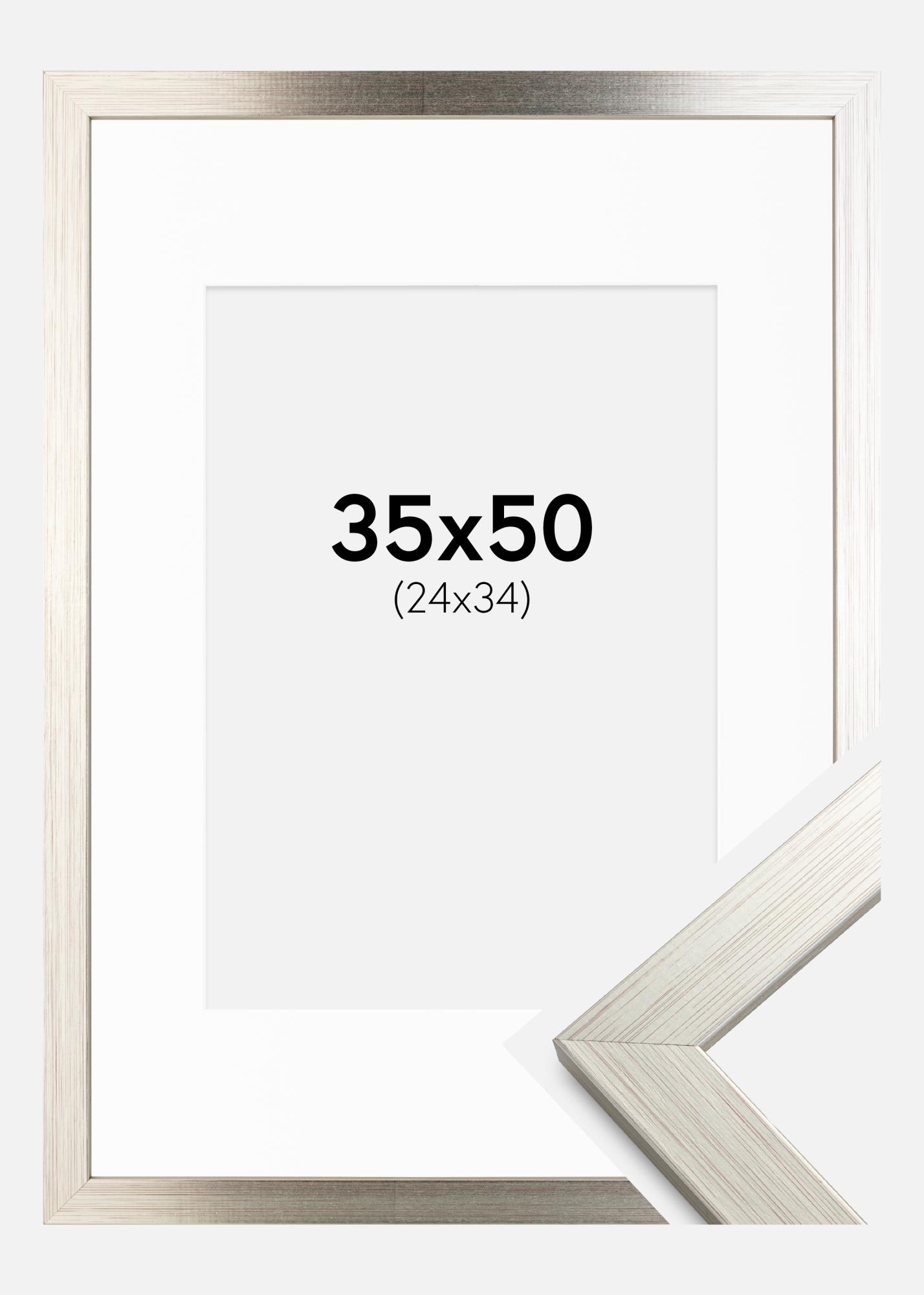 Πλαίσιο Ασημί Wood 35x50 cm - Πασπαρτού Λευκό 25x35 cm