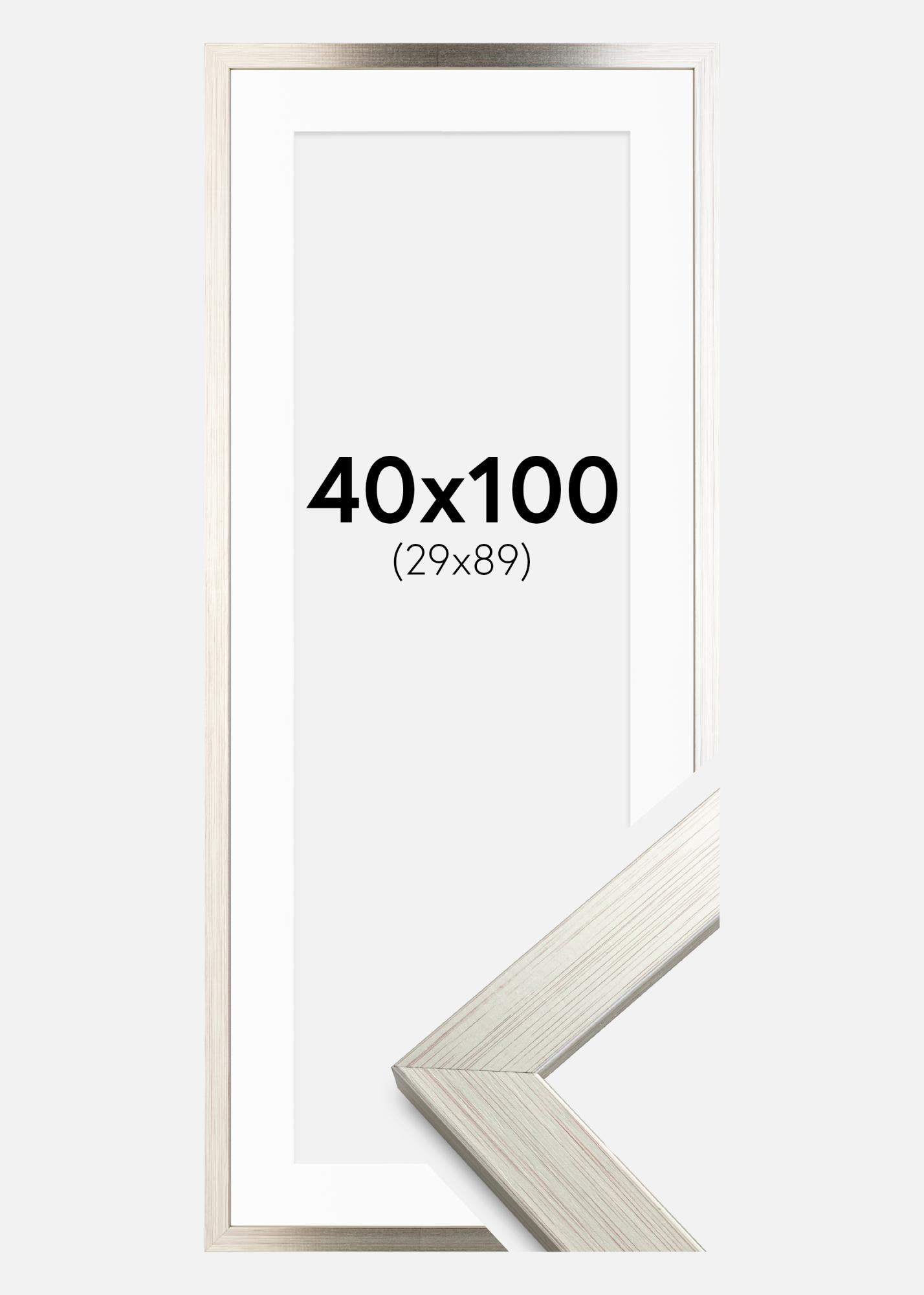 Πλαίσιο Ασημί Wood 40x100 cm - Πασπαρτού Λευκό 30x90 cm