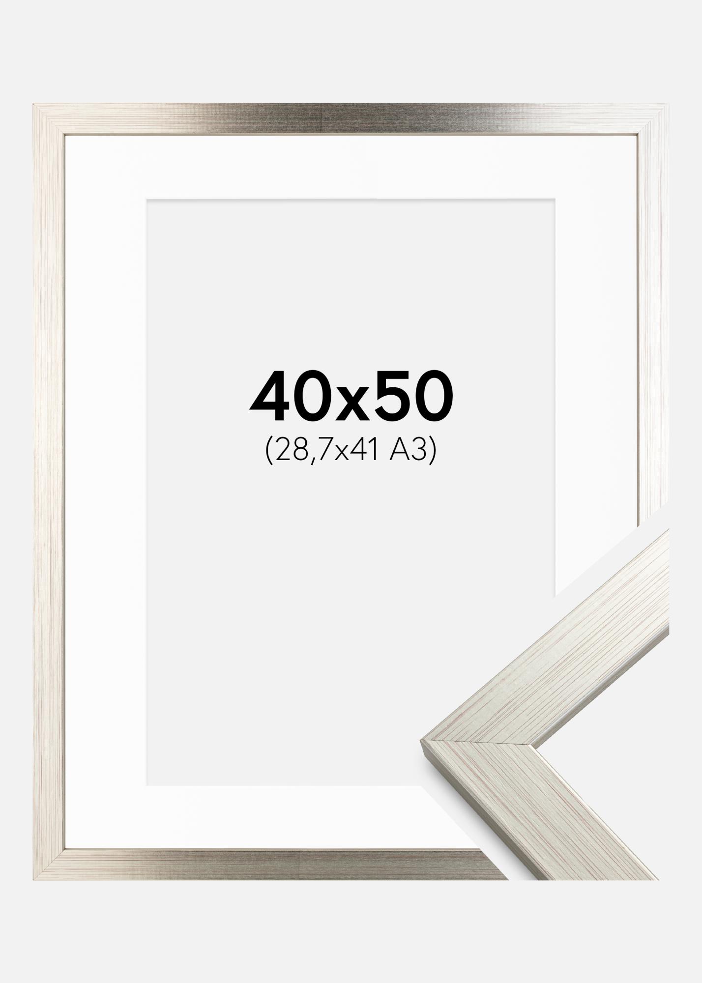 Πλαίσιο Ασημί Wood 40x50 cm - Πασπαρτού Λευκό 29,7x42 cm (A3)