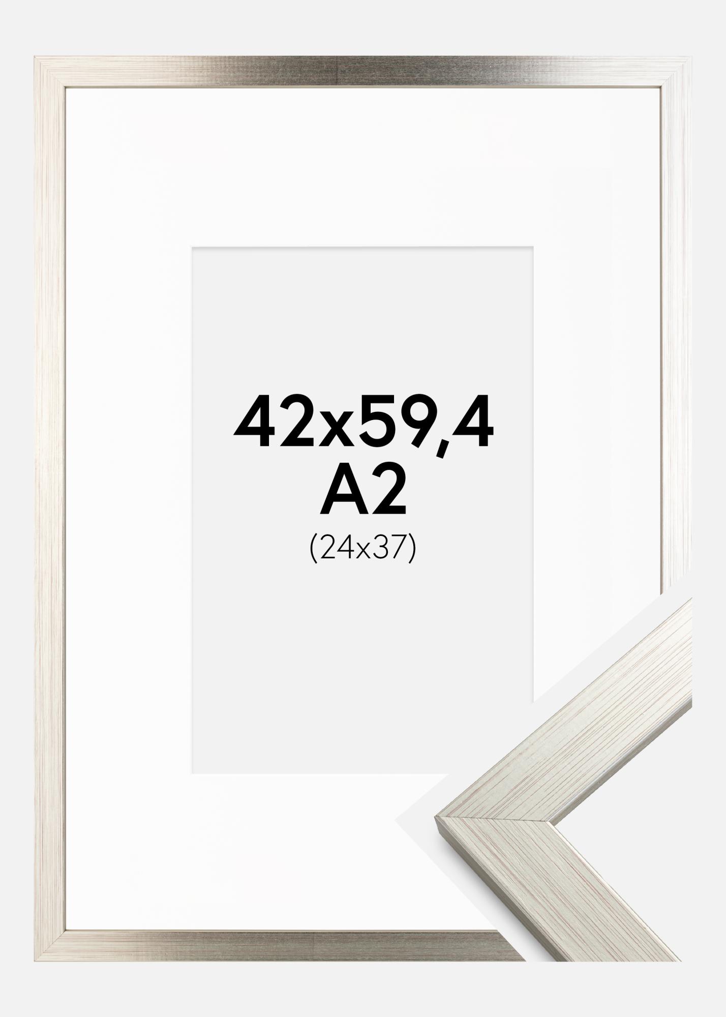 Πλαίσιο Ασημί Wood 42x59,4 cm (A2) - Πασπαρτού Λευκό 25x38 cm