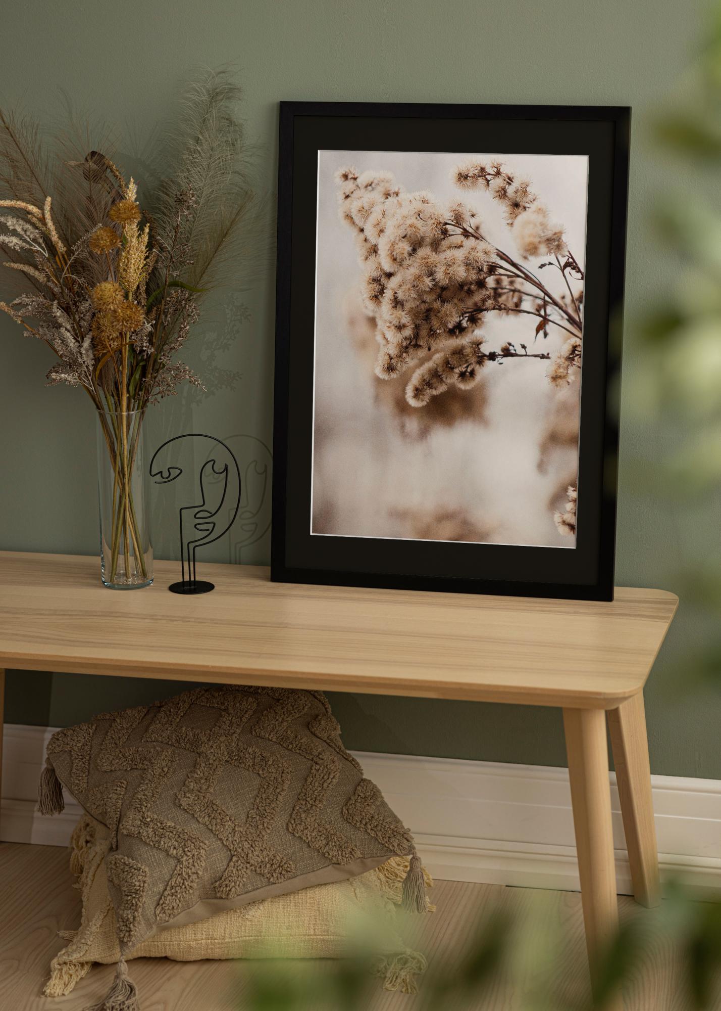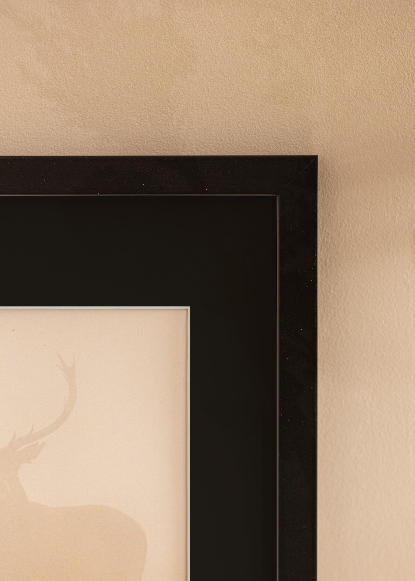 Η κορνίζα είναι ματ μαύρη, παρέχοντας ένα διακριτικό αλλά ισχυρό υπόβαθρο που επιτρέπει στην εικόνα να μιλήσει από μόνη της. Το μαύρο πασπαρτού συμπληρώνει την κορνίζα και συμβάλλει στο να επικεντρωθεί το βλέμμα προς την εικόνα, προστατεύοντας συγχρόνως τη φωτογραφία σας από την άμεση επαφή με το γυαλί.