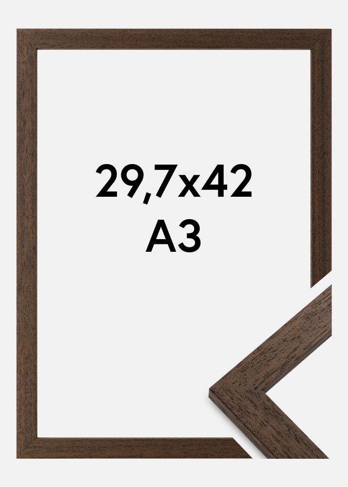 Δώστε στους τοίχους σας μια πινελιά κομψότητας με αυτή τη σκούρα καφέ κορνίζα μεγέθους 29,7x42 εκ. Η βαθιά υφή του ξύλου προσδίδει μια φυσική και αυθεντική αίσθηση στο σπίτι σας. Κατασκευασμένη στη Σουηδία, αυτή η κορνίζα συνδυάζει παραδοσιακή χειροτεχνία με μοντέρνο σχεδιασμό.