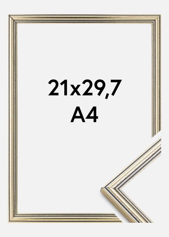 Κομψή ασημένια κορνίζα με μαύρα πιτσιλωτά στοιχεία σε κλασικό διαχρονικό σχέδιο. Με το ουδέτερο ασημί χρώμα της, αυτή είναι μια κορνίζα που ταιριάζει σχεδόν σε όλα τα θέματα και περιβάλλοντα.