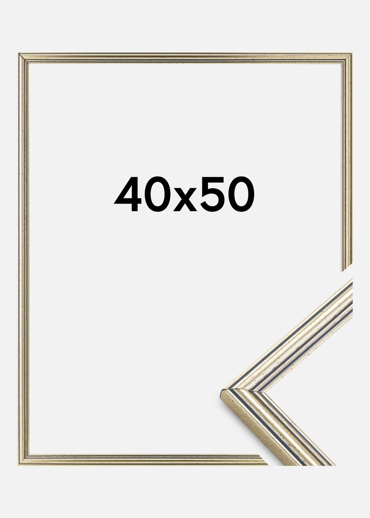 Κομψή ασημένια κορνίζα με μαύρες πιτσιλιές σε κλασικό διαχρονικό σχέδιο. Με το ουδέτερο ασημί χρώμα της, αυτή είναι μια κορνίζα που ταιριάζει σχεδόν σε όλα τα θέματα και περιστάσεις.