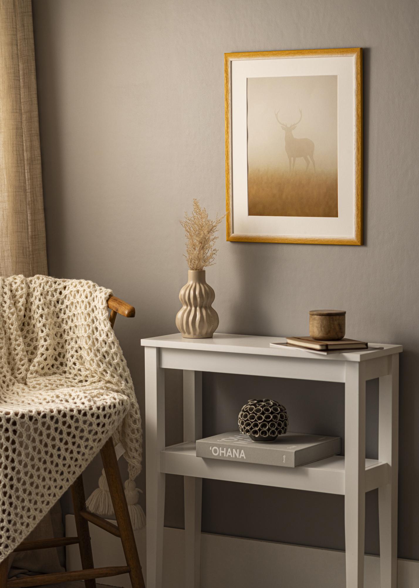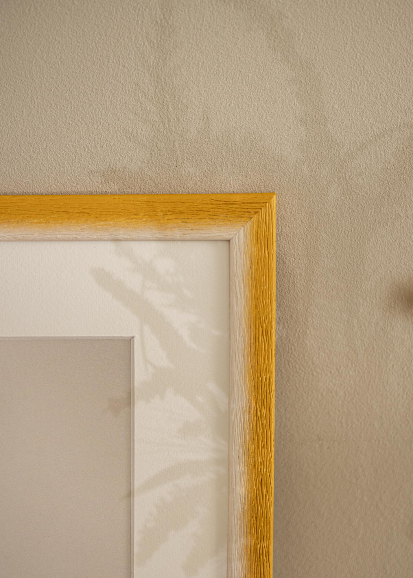 Αυτή η κορνίζα έχει μια αρμονική μετάβαση χρωμάτων από έναν ανοιχτό, φυσικό λευκό τόνο σε μια ζεστή απόχρωση ώχρας. Η επιφάνεια χαρακτηρίζεται από μια ξεκάθαρη δομή ξύλου με βαθιές φλέβες, προσφέροντας μια απτική και φυσική αίσθηση. Η διακριτική μετάβαση μεταξύ των χρωμάτων δημιουργεί μια απαλή, βαμμένη έκφραση με ζωντανό βάθος που αναδεικνύει κάθε εικόνα.