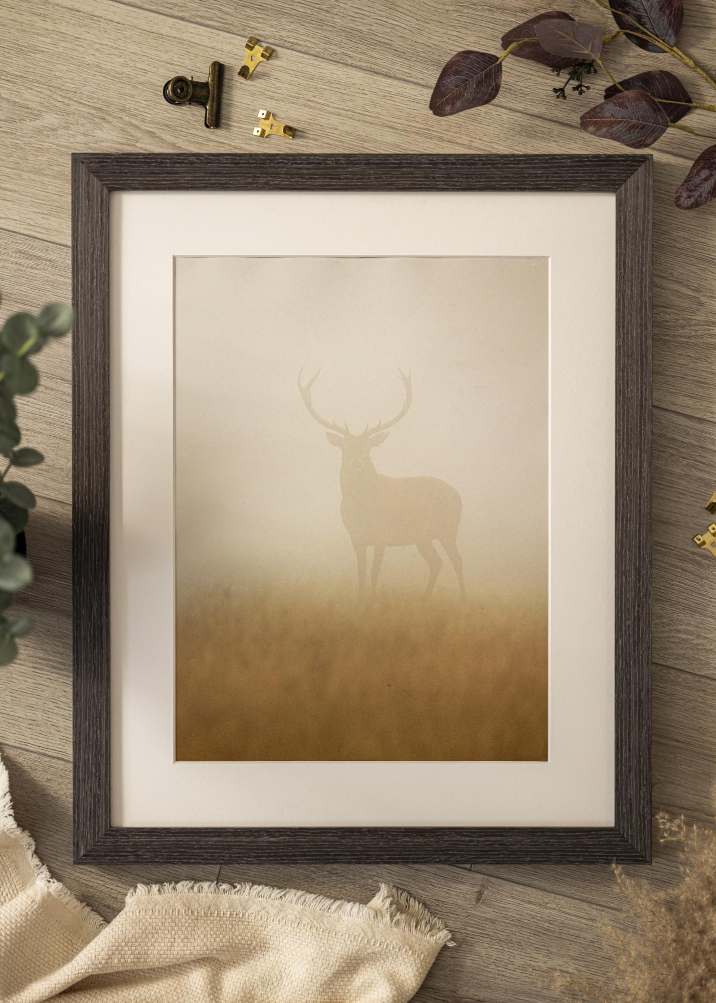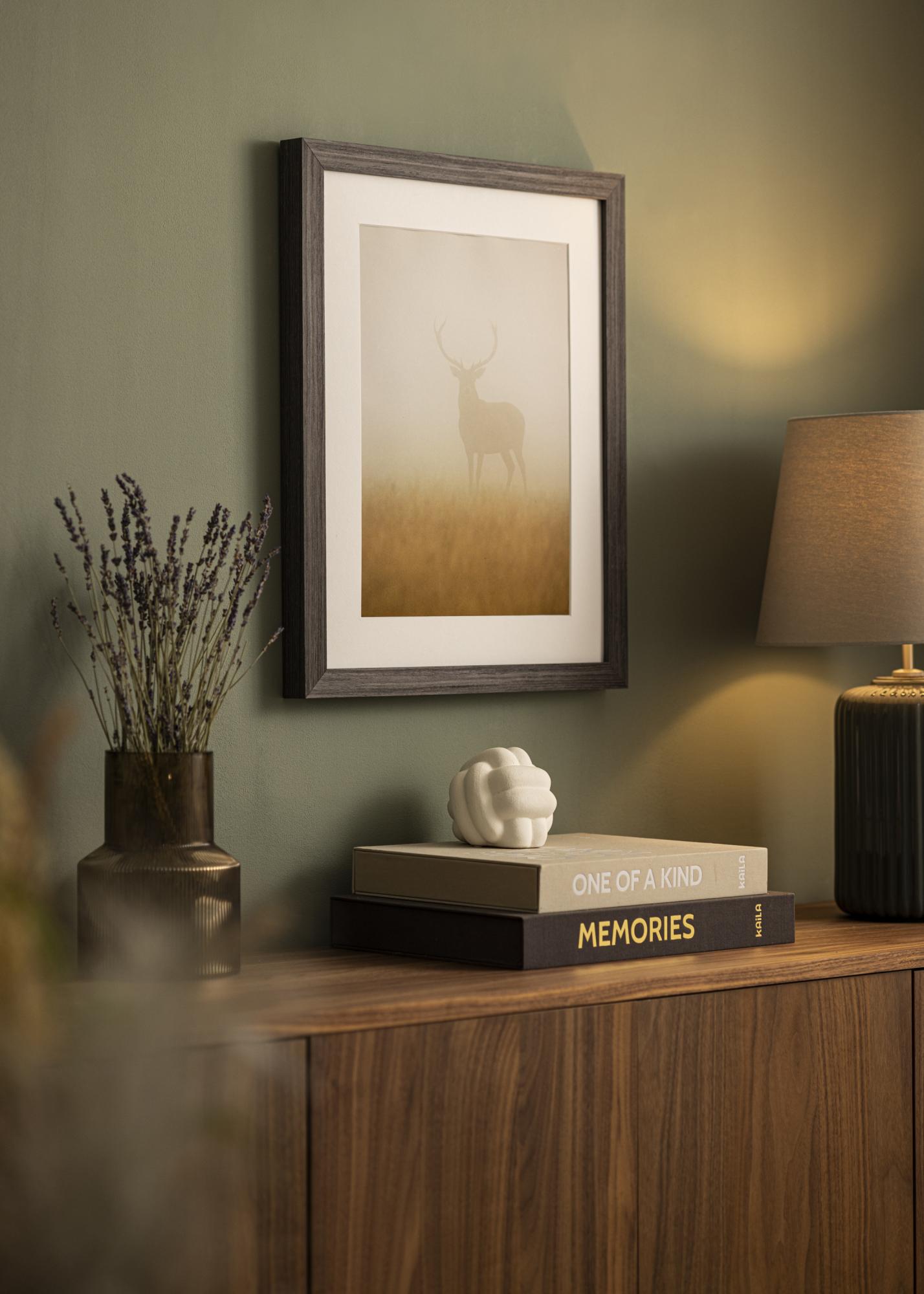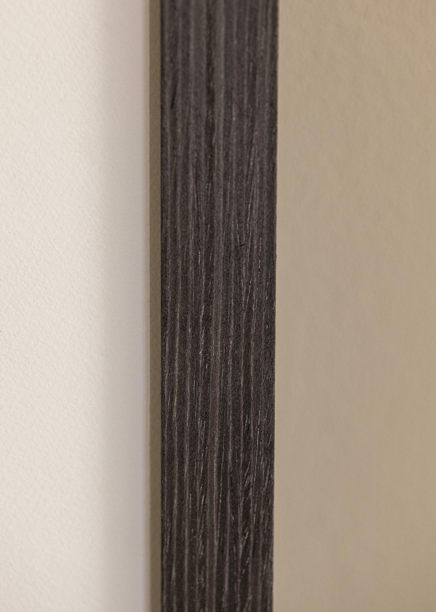 Αυτή η κορνίζα κατασκευάζεται από πεύκο και έχει τελείωμα από σκούρο ξύλο με ξεκάθαρη υφή φλεβικής δομής. Η βαθιά, σχεδόν μαυροκαφέ απόχρωση επιτρέπει στην φυσική υφή του ξύλου να εμφανίζεται μέσω μιας ελαφρώς ματ επιφάνειας, ενισχύοντας τη φυσική της εμφάνιση. Το στενό και ίσιο προφίλ της προσφέρει μια διακριτική και κομψή έκφραση που ταιριάζει στους περισσότερους χώρους.