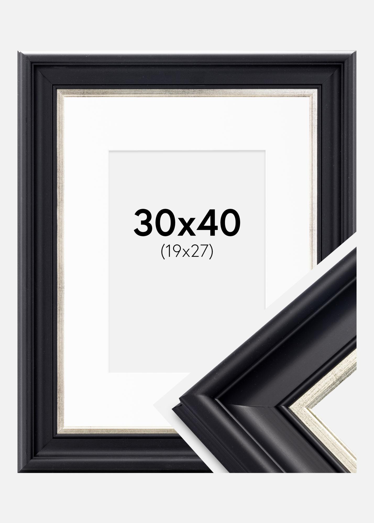 Πλαίσιο Dalarna Μαύρο-ασημένιο 30x40 cm - Πασπαρτού Λευκό 20x28 cm