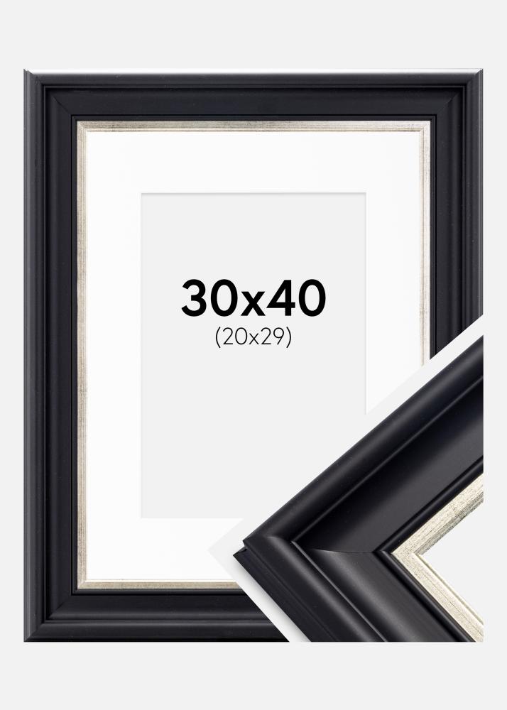 Πλαίσιο Dalarna Μαύρο-ασημένιο 30x40 cm - Πασπαρτού Λευκό 21x30 cm