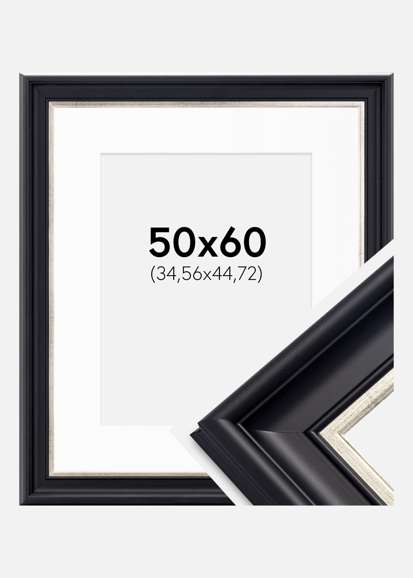 Πλαίσιο Dalarna Μαύρο-ασημένιο 50x60 cm - Πασπαρτού Λευκό 14x18 inches