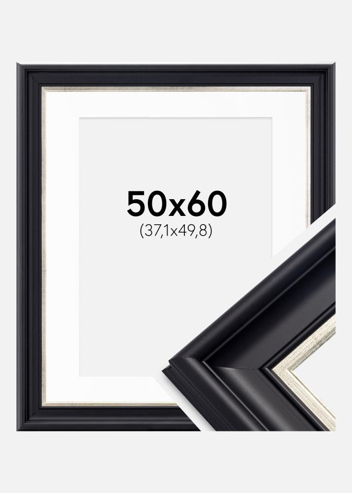Πλαίσιο Dalarna Μαύρο-ασημένιο 50x60 cm - Πασπαρτού Λευκό 15x20 inches
