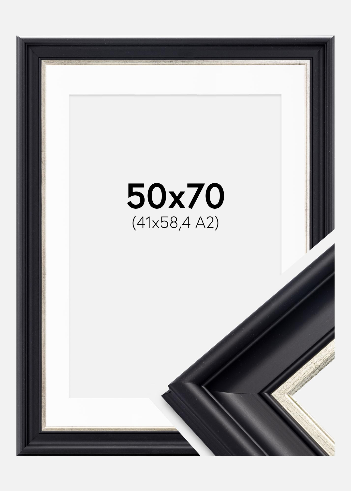 Πλαίσιο Dalarna Μαύρο-ασημένιο 50x70 cm - Πασπαρτού Λευκό 42x59,4 cm (A2)