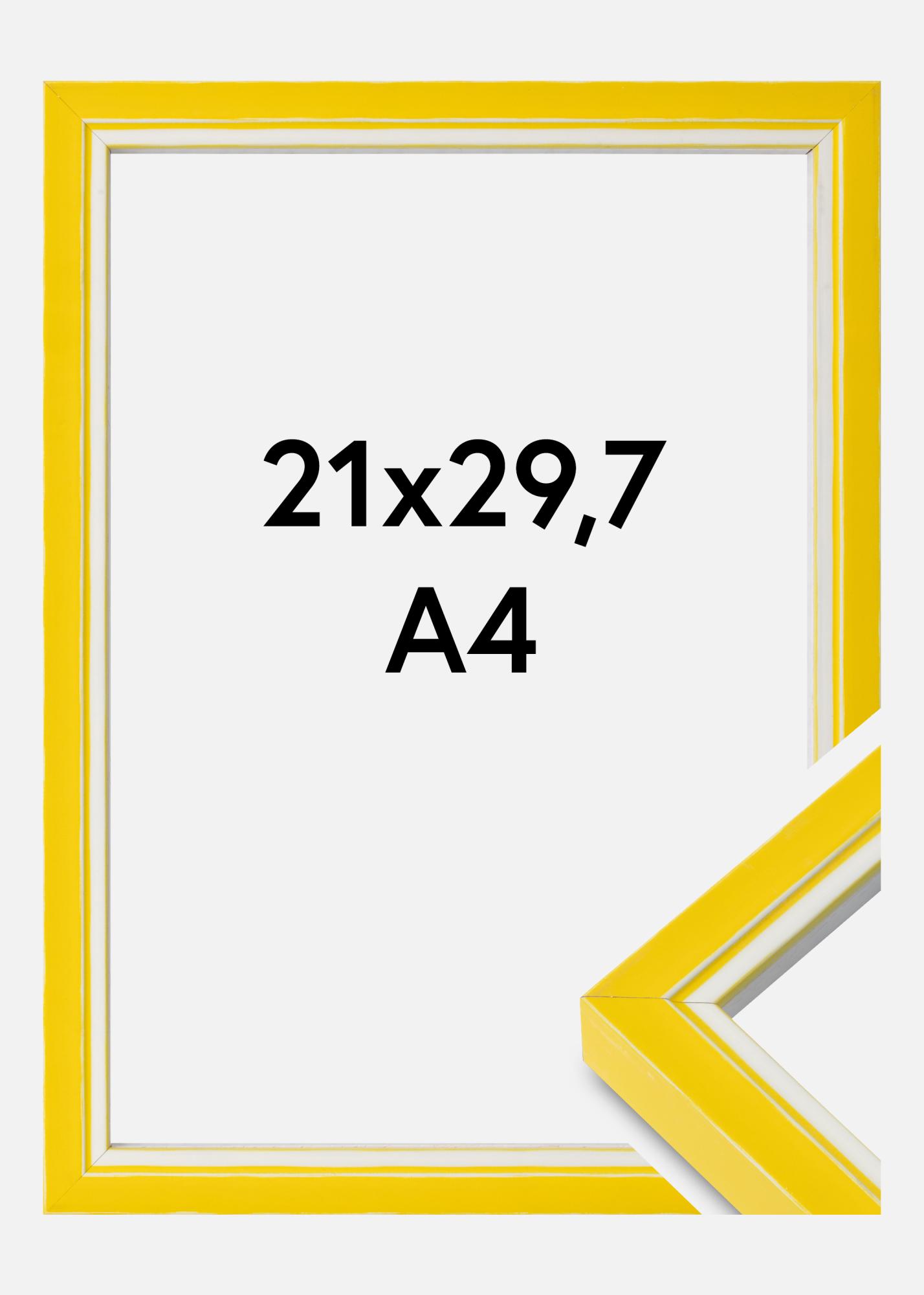 Δώστε στις εικόνες σας ένα πολύχρωμο πλαίσιο με αυτήν τη φωτογραφική κορνίζα μεγέθους 21x29,7 cm (A4). Η επιφάνεια της κορνίζας, βαμμένη σε κίτρινο και λευκό, προσδίδει μια παιχνιδιάρικη και φωτεινή διάσταση στο θέμα σας. Κατασκευασμένη στην Ολλανδία, αυτή η κορνίζα προσφέρει ποιότητα και αντοχή που συμπληρώνει τη διακόσμησή σας.