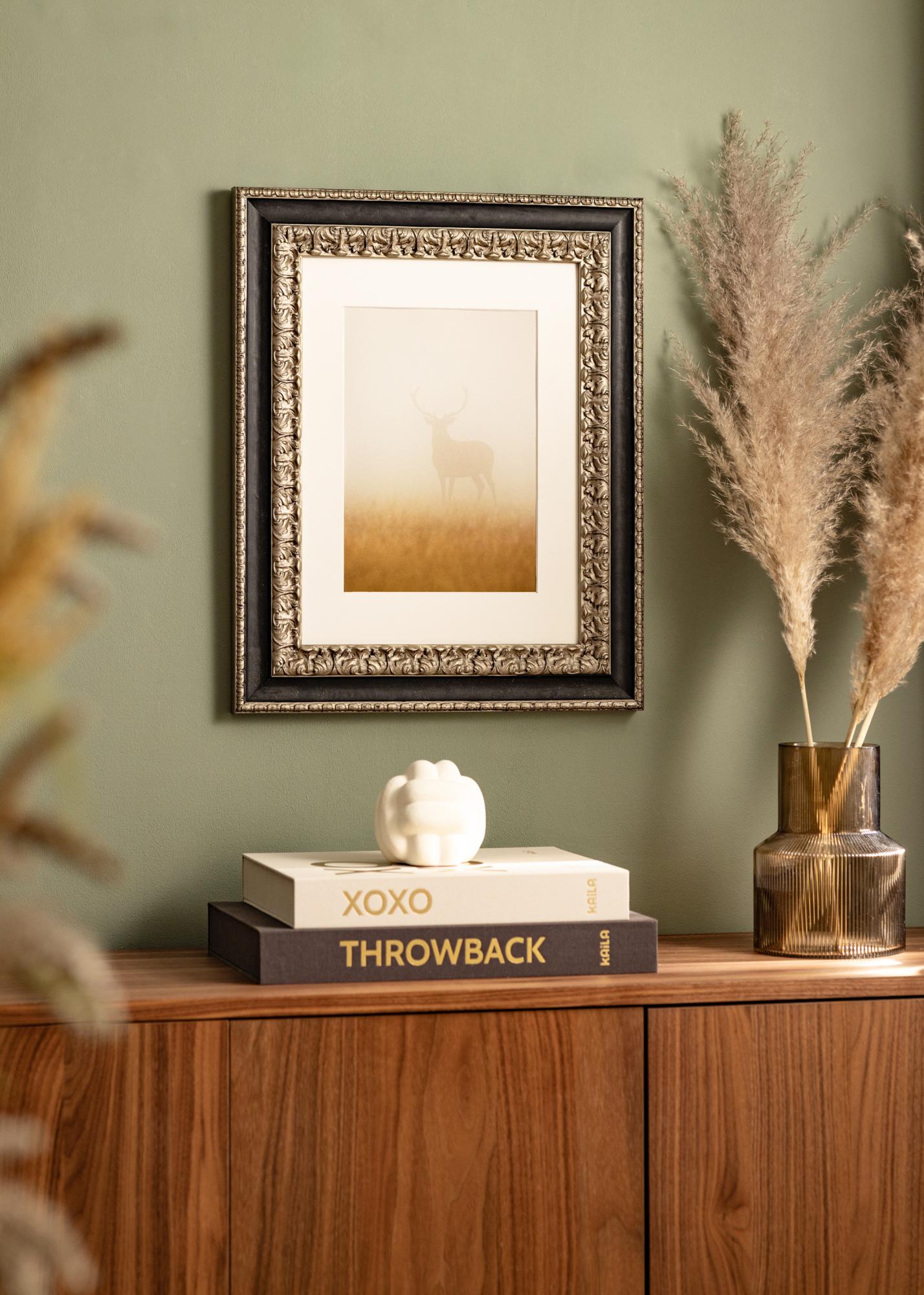 "Drottningholm Silver" είναι μια όμορφη ρετρό κορνίζα από την Ιταλία φτιαγμένη από συνθετό ξύλο πεύκης που είναι ζωγραφισμένη στο χέρι. Η κορνίζα έχει ένα πλούσια διακοσμημένο ασημί προφίλ με μια πλατιά μαύρη άκρη που δίνει στην κορνίζα τον κομψό της χαρακτήρα. Ιδανική για όλους τους τύπους πλαισίωσης με ρετρό στυλ.