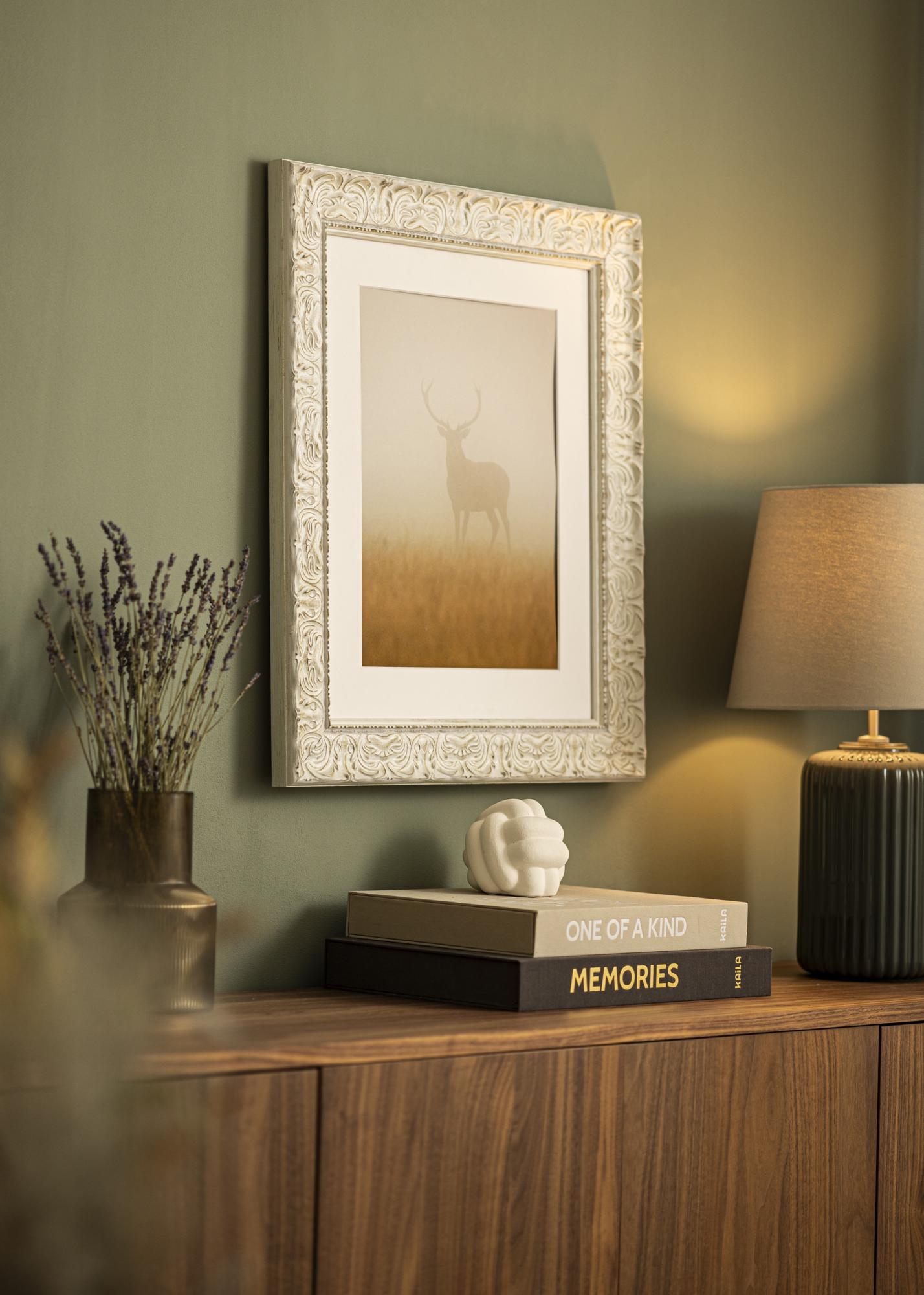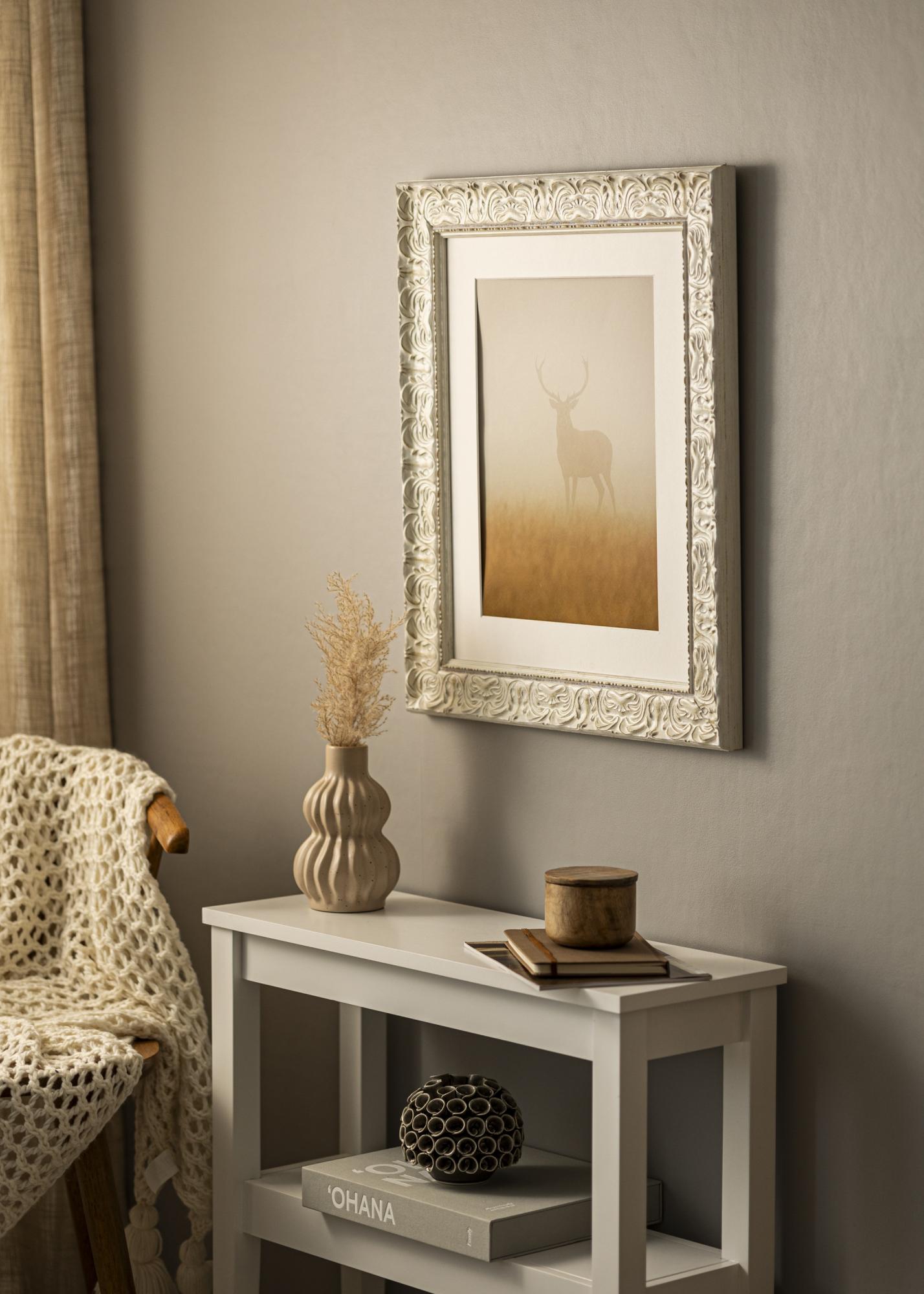 Η κορνίζα Durham Λευκό είναι μια κομψή και κλασική κορνίζα που προσφέρει μια διαχρονική ένθεση στις εικόνες σας. Με το αντίκρυ άσπρο χρώμα της και την διακοσμητική ανάγλυφη κορνίζα, δημιουργεί μια σοφιστικέ ατμόσφαιρα σε οποιοδήποτε δωμάτιο. Το διακριτικά φθαρμένο φινίρισμα της προσδίδει μια μοναδική χαρακτήρα και ενισχύει την κλασική της έκφραση, καθιστώντας την ιδανική επιλογή για τόσο μοντέρνες όσο και παραδοσιακές διακοσμήσεις.