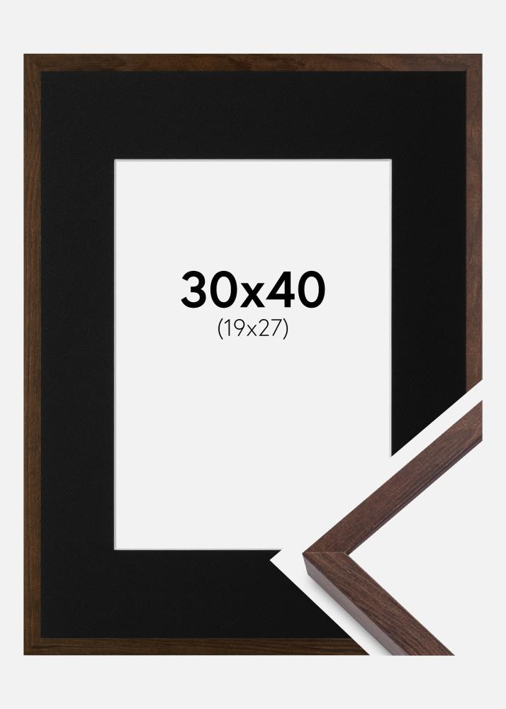 Πλαίσιο E-Line Καρυδιά 30x40 cm - Πασπαρτού Μαύρος 20x28 cm