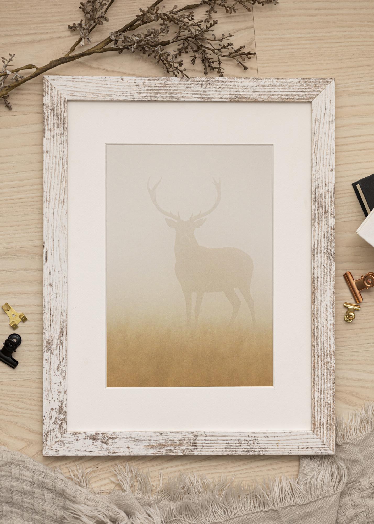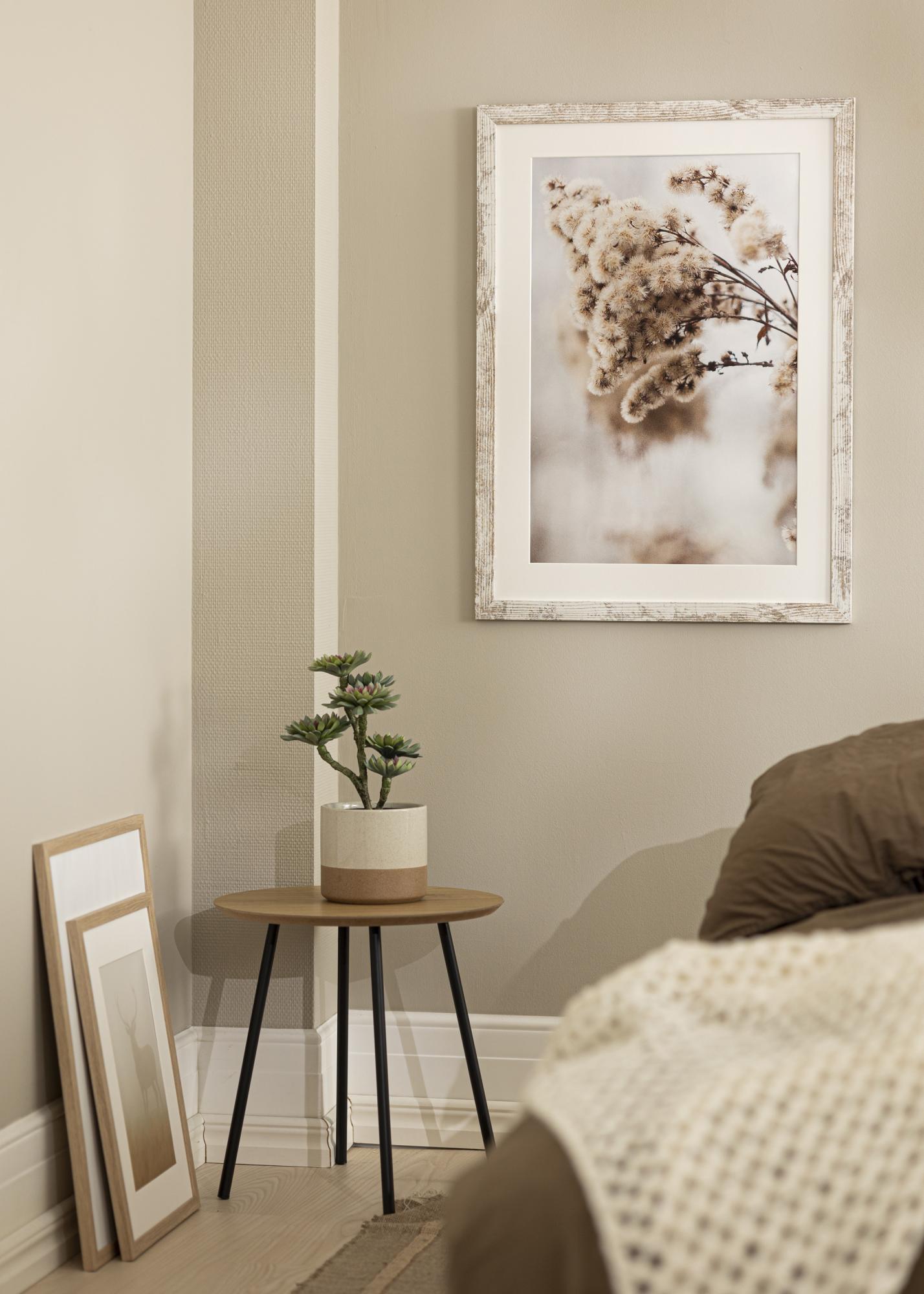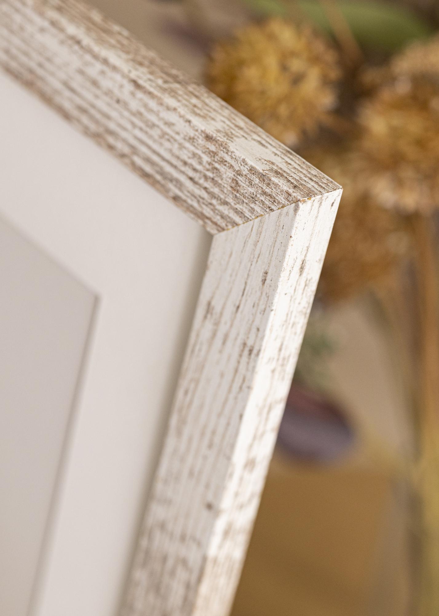 Κομψή κορνίζα vintage με ένα φαρδύ προφίλ με φθαρμένη όψη σε λευκό και ξύλο. Προσφέρει μια επιπλέον διάσταση στις εικόνες σας και ταιριάζει τέλεια όταν θέλετε μια κορνίζα με αυθεντική αίσθηση vintage.