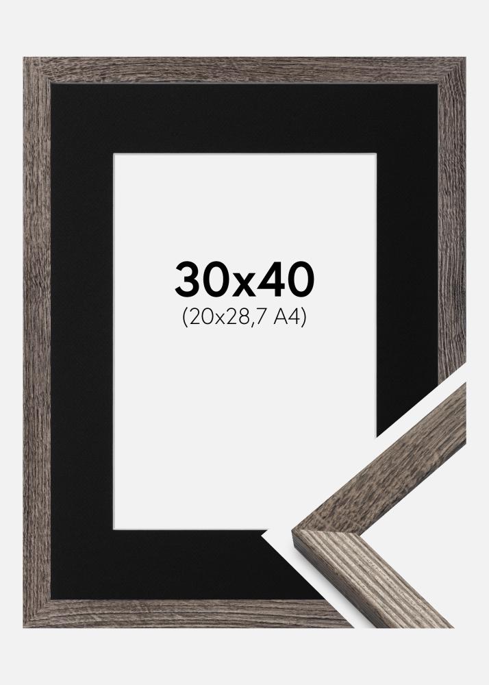Πλαίσιο Fiorito Καρυδιά 30x40 cm - Πασπαρτού Μαύρος 21x29,7 cm (A4)
