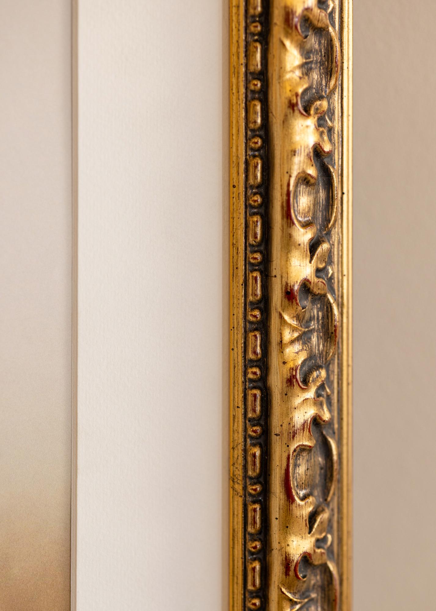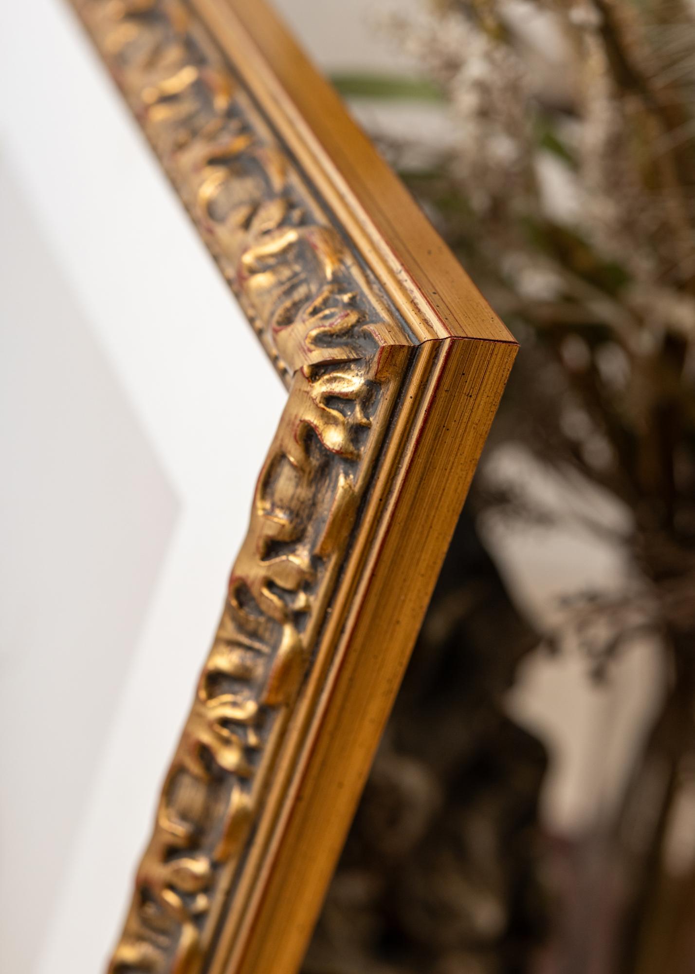 Η κορνίζα Freyja Χρυσό είναι μια κομψή και εκλεπτυσμένη κορνίζα φωτογραφιών που προσφέρει στις εικόνες σας πολυτελή παρουσίαση. Με τη χρυσή της επιφάνεια και τα πολύπλοκα στολίδια, γίνεται ένα εντυπωσιακό στοιχείο σε οποιοδήποτε δωμάτιο. Η παλαιωμένη εμφάνισή της, με σκούρες πατιναρισμένες λεπτομέρειες και λεπτά κόκκινα στοιχεία, ενισχύει τον ρουστίκ χαρακτήρα της κορνίζας και προσδίδει διαχρονική γοητεία.