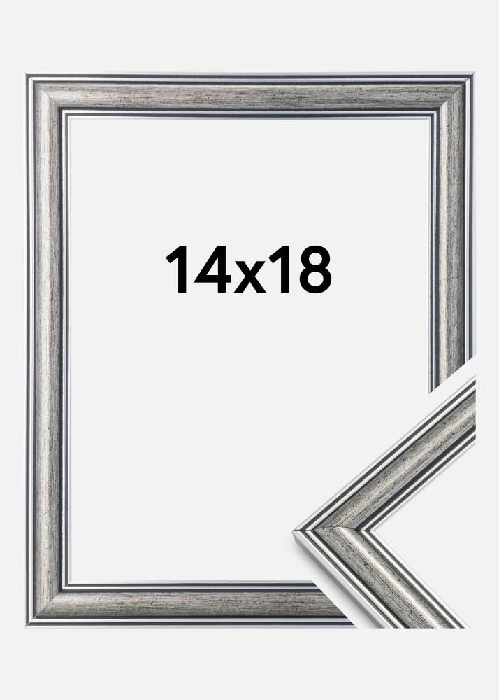 Η Frigg είναι μια ασημένια κορνίζα με μαύρες γραμμές και μαύρες κηλίδες. Ταιριάζει εξαιρετικά όταν ψάχνετε για μια ευρεία παραδοσιακή ασημένια κορνίζα που ταιριάζει σε πολλούς τύπους εικόνων και περιβάλλοντα.