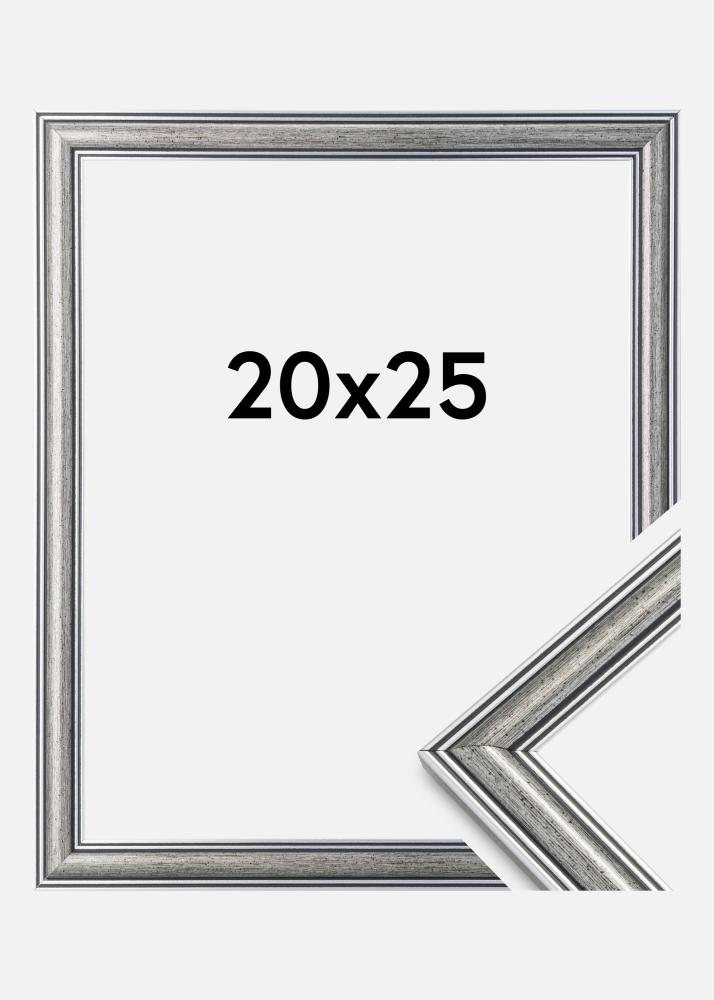 Frigg είναι μια ασημένια κορνίζα με μαύρες γραμμές και μαύρα στίγματα. Είναι εξαιρετική επιλογή όταν αναζητάτε μια φαρδιά παραδοσιακή ασημένια κορνίζα που ταιριάζει σε πολλά είδη εικόνων και περιβάλλοντα.
