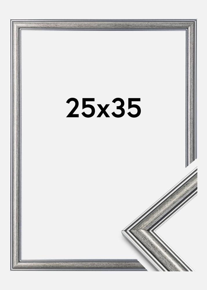 Frigg είναι μια ασημένια κορνίζα με μαύρες γραμμές και μαύρες πιτσιλιές. Ιδανική επιλογή όταν αναζητάτε μια πλατιά παραδοσιακή ασημένια κορνίζα που ταιριάζει σε πολλούς τύπους εικόνων και περιβάλλοντος.