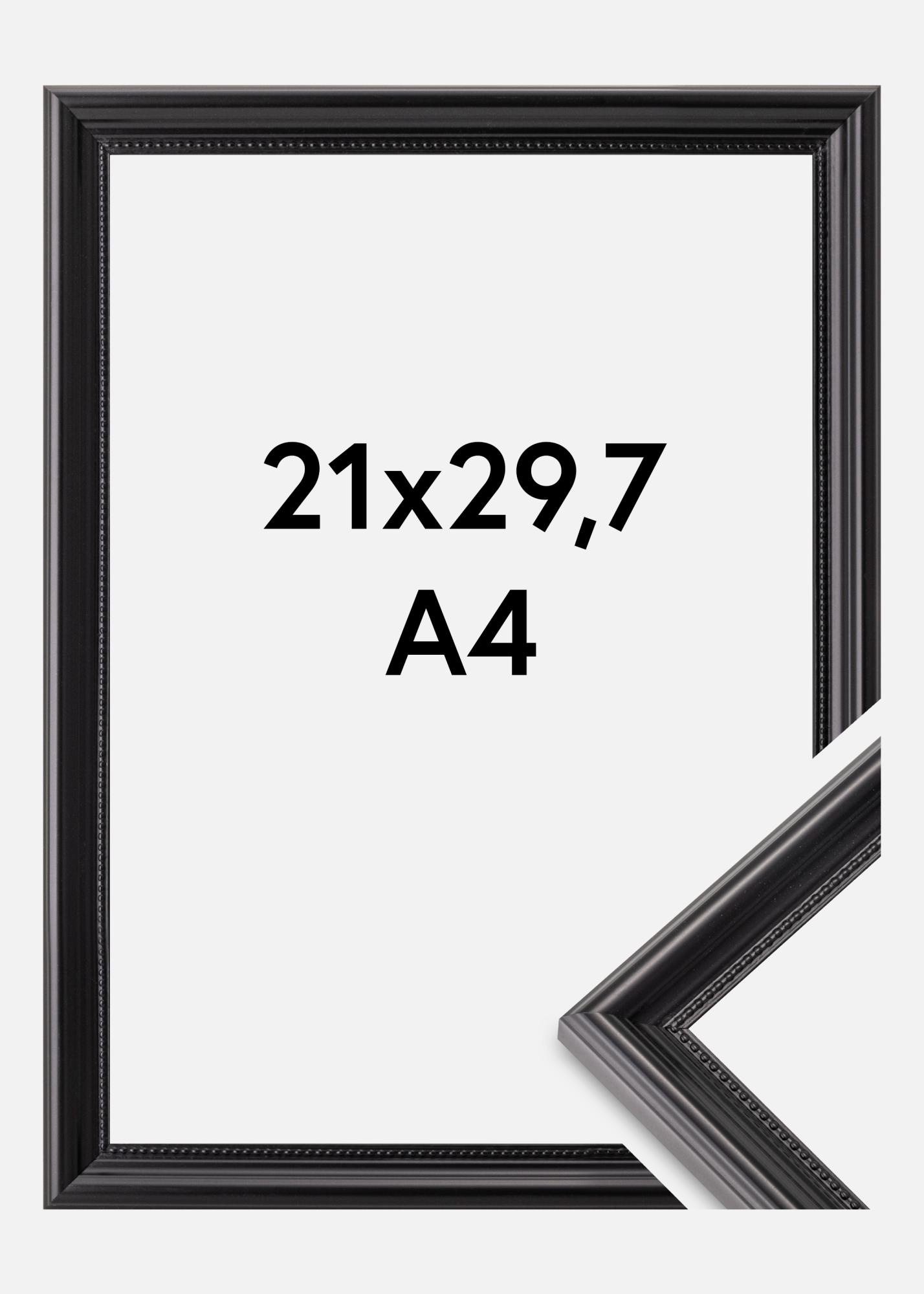 Ανακαλύψτε την κομψότητα και τη διαχρονική σχεδίαση με την μαύρη κορνίζα μας σε μέγεθος 21x29,7 εκ. (A4). Αυτή η κορνίζα είναι ιδανική για να αναδείξετε τις αγαπημένες σας φωτογραφίες ή έργα τέχνης με το προφίλ της με ρετρό στυλ. Η κορνίζα πλάτους 20 mm συμπληρώνεται από βάθος 17 mm, που παρέχει μια ευδιάκριτη και ελκυστική άκρη στην κορνιζαρισμένη εικόνα σας.