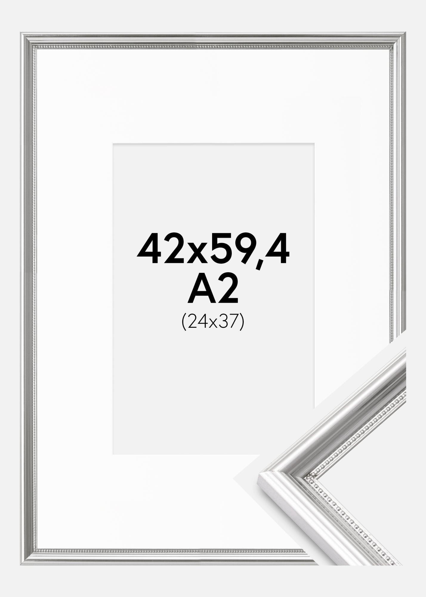 Με το κομψό ασημένιο χρώμα του και το αντιθετικό λευκό passepartout, αυτό το πλαίσιο είναι μια εξαιρετική επιλογή για όποιον θέλει να αναδείξει τις εικόνες του με μια πινελιά κλάσης. Είτε πρόκειται για οικογενειακή φωτογραφία, έργο τέχνης ή δίπλωμα, αυτή η κορνίζα θα δώσει στην εικόνα σας την προσοχή που της αξίζει.