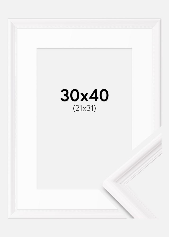 Μετατρέψτε τις φωτογραφίες σας σε έργα τέχνης με την κομψή μας κορνίζα σε λευκό χρώμα, πλήρης με μια στυλάτη πασπαρτού. Αυτή η κορνίζα είναι σχεδιασμένη για να ταιριάζει σε φωτογραφίες μεγέθους 22x32 cm και έχει συνολικές εξωτερικές διαστάσεις 32,9x42,9 cm. Με πλάτος 20 mm και βάθος 17 mm προσφέρει ένα στιβαρό και εκλεπτυσμένο πλαίσιο που αναδεικνύει τις αγαπημένες σας φωτογραφίες.