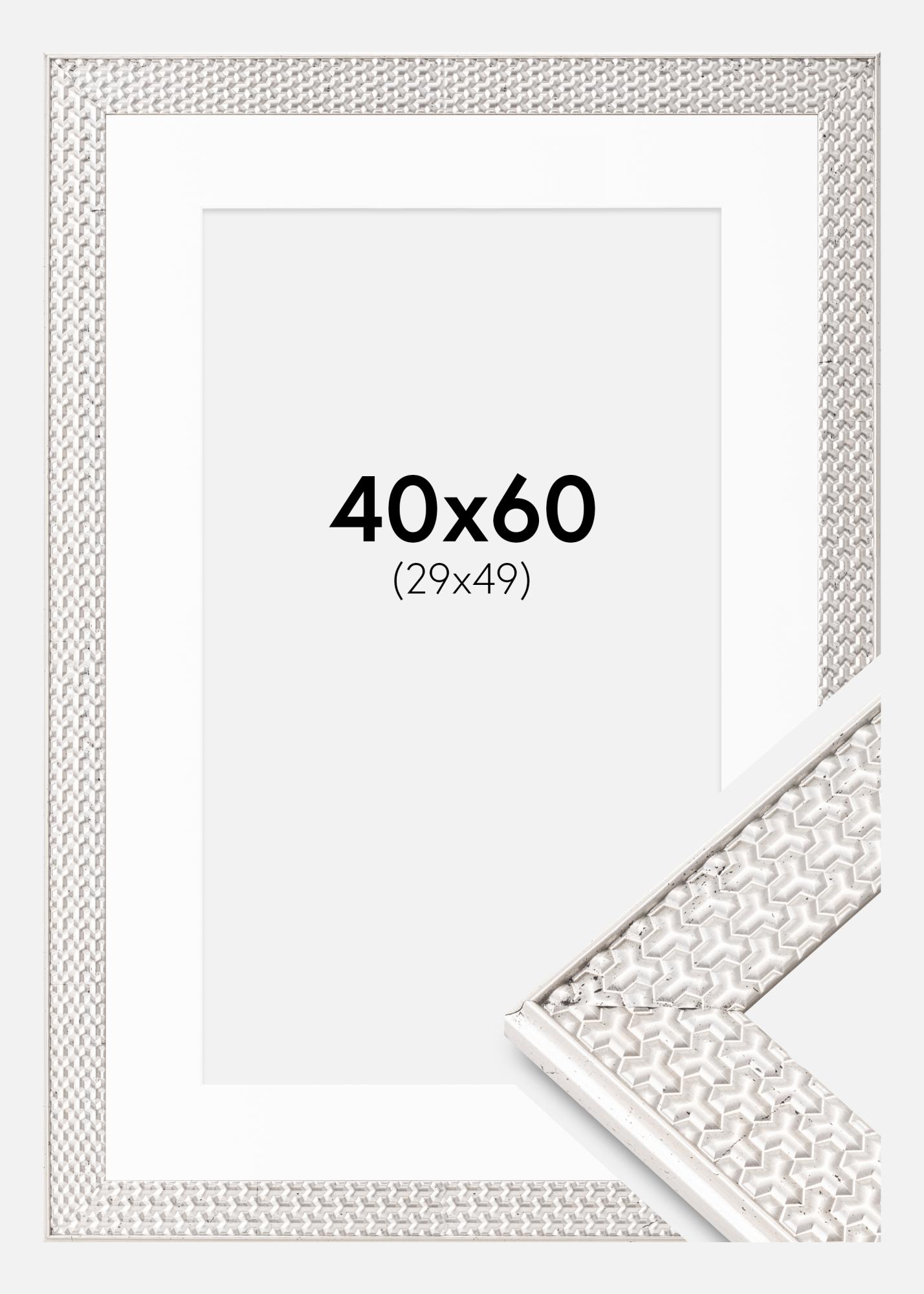 Μεταμορφώστε την αγαπημένη σας φωτογραφία ή έργο τέχνης σε μια κομψή διακόσμηση τοίχου με αυτήν τη στυλάτη ασημένια κορνίζα με λευκή πασπαρτού. Με τις καθαρές γραμμές της και τον κλασικό συνδυασμό χρωμάτων, η κορνίζα είναι το τέλειο συμπλήρωμα για κάθε τύπο στυλ εσωτερικής διακόσμησης. Οι εξωτερικές διαστάσεις της κορνίζας είναι 45,8x65,8 εκ. και είναι σχεδιασμένη για να αναδεικνύει εικόνα μεγέθους 30x50 εκ.