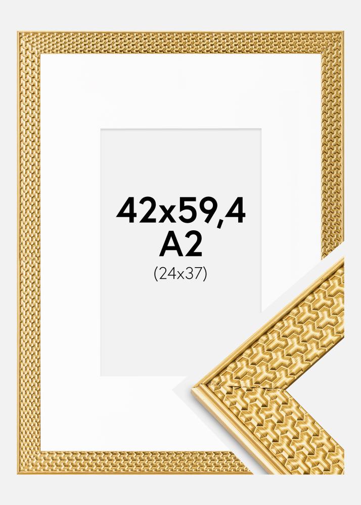 Το πλάτος της κορνίζας 35 mm και το βάθος 17 mm προσφέρουν μια ανθεκτική και σταθερή κατασκευή, ενώ το χρυσό χρώμα προσθέτει μια αίσθηση πολυτέλειας και ζεστασιάς στο δωμάτιο. Με τις εξωτερικές διαστάσεις της κορνίζας στα 47,8x65,2 cm γίνεται ένα εντυπωσιακό στοιχείο στον τοίχο. Η κορνίζα είναι εξοπλισμένη με μεταλλικούς γάντζους στο πίσω μέρος, που επιτρέπουν την ανάρτηση της εικόνας σας τόσο οριζόντια όσο και κάθετα, ανάλογα με τον προσανατολισμό του έργου τέχνης και τις ανάγκες του χώρου σας.