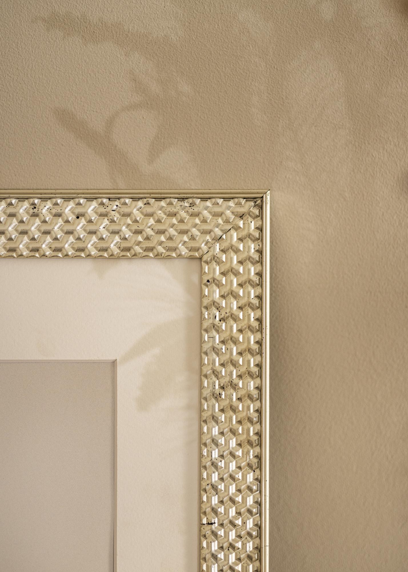 Η κορνίζα είναι εξοπλισμένη με ένα λευκό passepartout που ταιριάζει σε εικόνες μεγέθους 22x32 cm, προσδίδοντας μια επιπλέον διάσταση και βάθος στις φωτογραφίες σας. Η passepartout δημιουργεί μια αρμονική ισορροπία μεταξύ της εικόνας και της κορνίζας, επιτρέποντας στο θέμα να ξεχωρίσει πραγματικά.