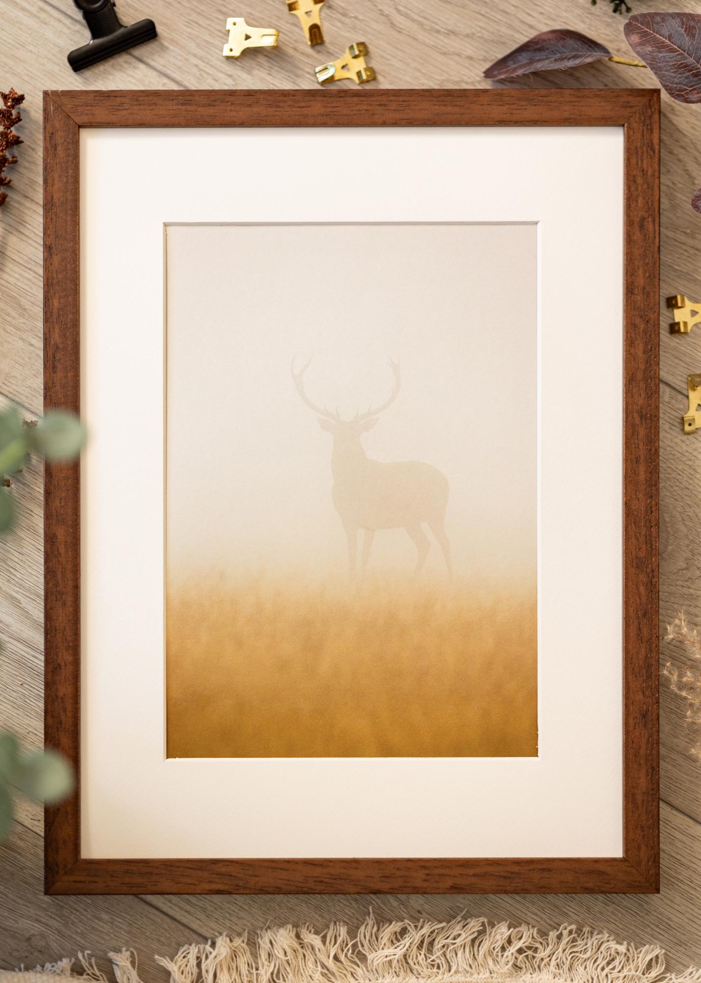Η κορνίζα διαθέτει επιφάνεια που μιμείται το ξύλο τικ, προσδίδοντας μια σοφιστικέ εμφάνιση σε οποιοδήποτε δωμάτιο. Η λωρίδα του πλαισίου των 19,6 mm συμπληρώνει το θέμα χωρίς να υπερισχύει, ενώ το βάθος του πλαισίου στα 25 mm προσφέρει μια διακριτή προφίλ στον τοίχο. Αυτή η κορνίζα είναι όχι μόνο κομψή αλλά και πρακτική, χάρη στους παρεχόμενους μεταλλικούς γάντζους που επιτρέπουν την ανάρτηση τόσο οριζόντια όσο και κάθετα.