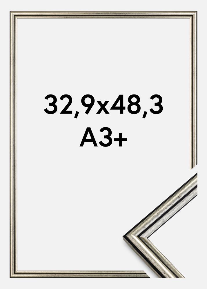 Ανακαλύψτε το κομψό ασημένιο πλαίσιο με διαστάσεις 32,9x48,3 εκ. (A3+), έναν τέλειο συνδυασμό στυλ και λειτουργικότητας για τις αγαπημένες σας φωτογραφίες ή έργα τέχνης. Αυτή η κορνίζα είναι ειδικά σχεδιασμένη για να δώσει μια εκλεπτυσμένη εντύπωση με τις μαύρες λεπτομέρειες και τις μαύρες γραμμές που διακριτικά αναδεικνύουν το σχεδιασμό του πλαισίου.