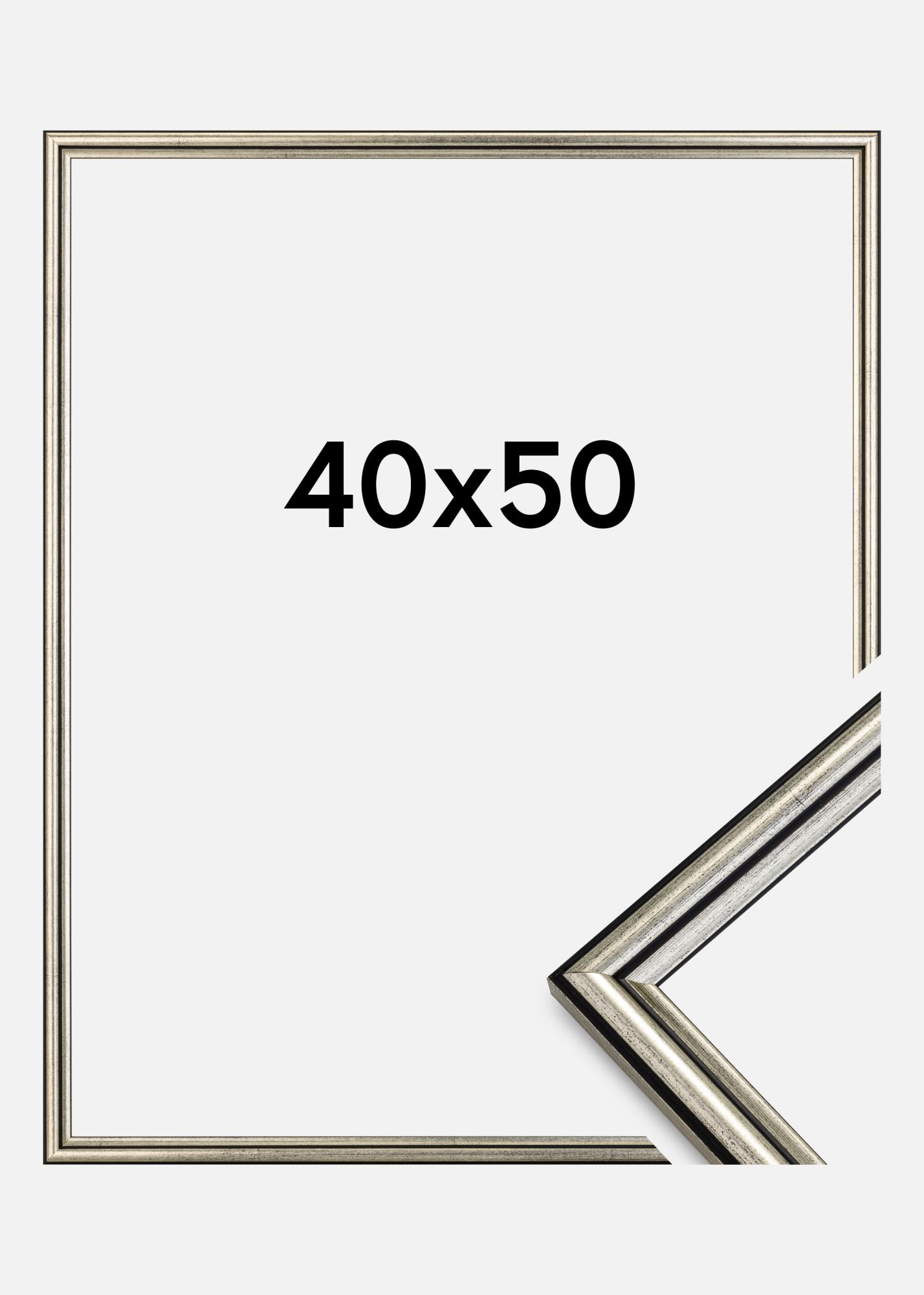 Ανακαλύψτε την κομψότητα στην απλότητα με την κορνίζα μας 40x50 cm σε ασημί, ιδανική για να αναδείξετε τις αγαπημένες σας φωτογραφίες ή έργα τέχνης. Αυτή η κορνίζα διαθέτει μια διακριτή σχεδίαση με μαύρες πινελιές και μαύρες γραμμές που προσδίδουν μια σοφιστικέ εντύπωση χωρίς να κυριαρχούν.