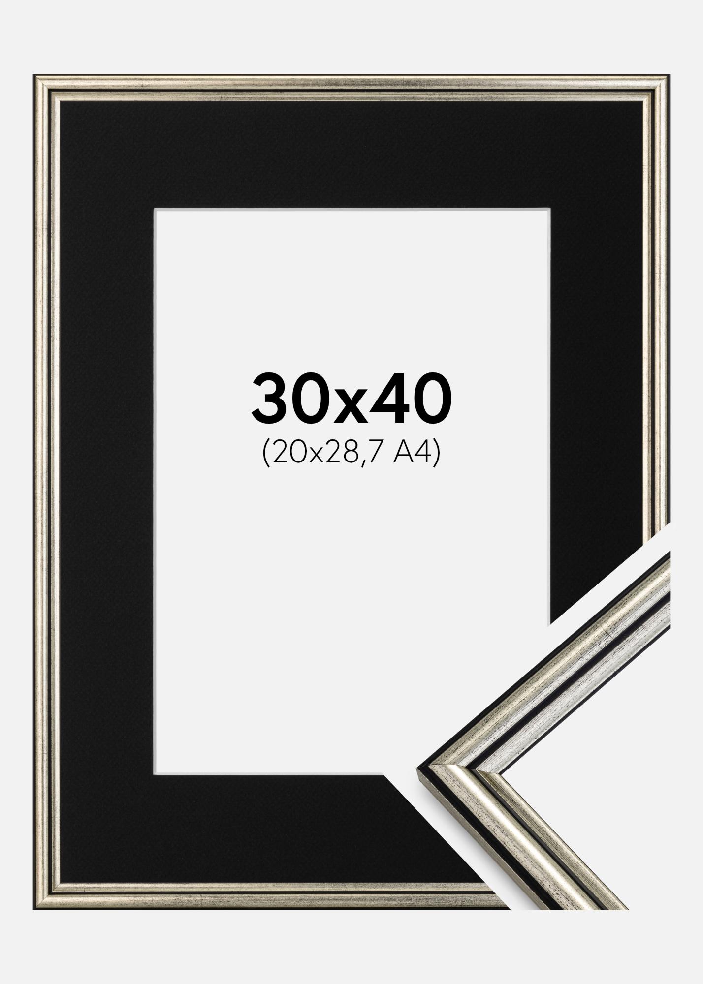 Δώστε στις αγαπημένες σας εικόνες την προσοχή που τους αξίζει με μια κομψή ασημένια κορνίζα συμπληρωμένη με ένα μαύρο πασπαρτού. Αυτός ο εκλεπτυσμένος συνδυασμός αναδεικνύει την αντίθεση και το βάθος της εικόνας σας σε μέγεθος A4 (21x29,7 cm), ενώ ταυτόχρονα προστατεύει και αναδεικνύει την ομορφιά της. Το λεπτό πλάτος της κορνίζας 15 mm και το βάθος 14 mm παρέχουν μια διακριτική αλλά παρούσα αίσθηση στη διακόσμηση του τοίχου σας.